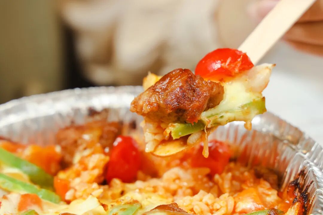 紧实咸香的腊肠和熏香鸡肉丁混搭