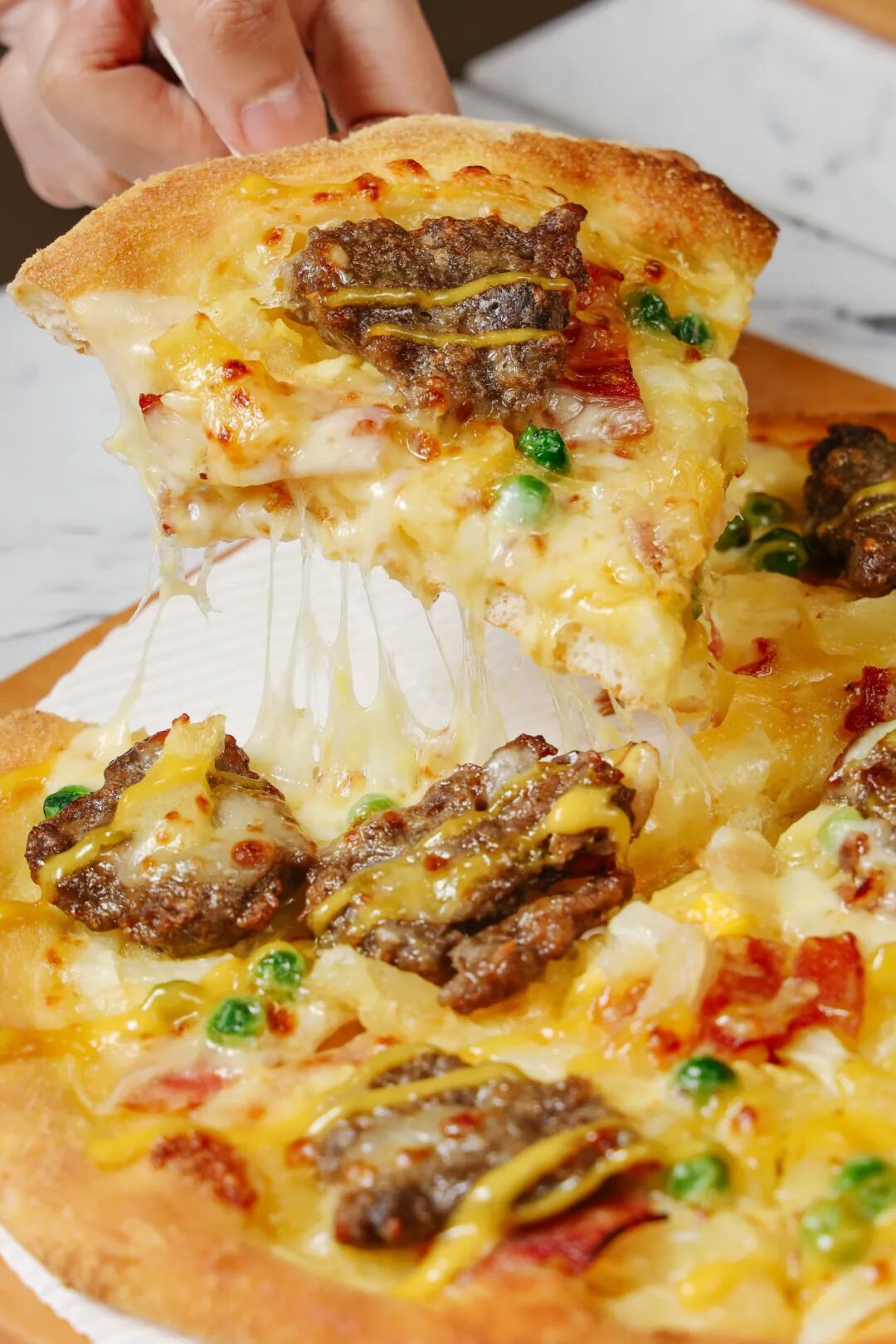 照烧风味牛肉土豆比萨作为达美乐的经典风味,可是一直稳坐推荐榜前列!美味的照烧风味牛肉搭配微脆的美式薯角和咸香培根,每一口都能吃出扎实且丰富的用料。