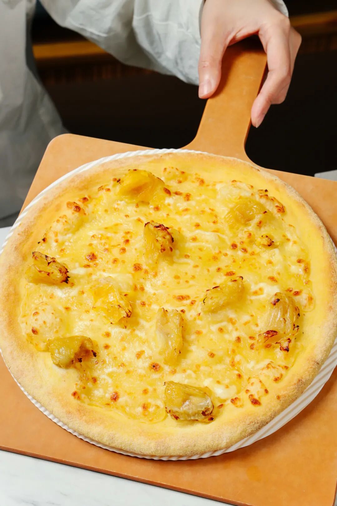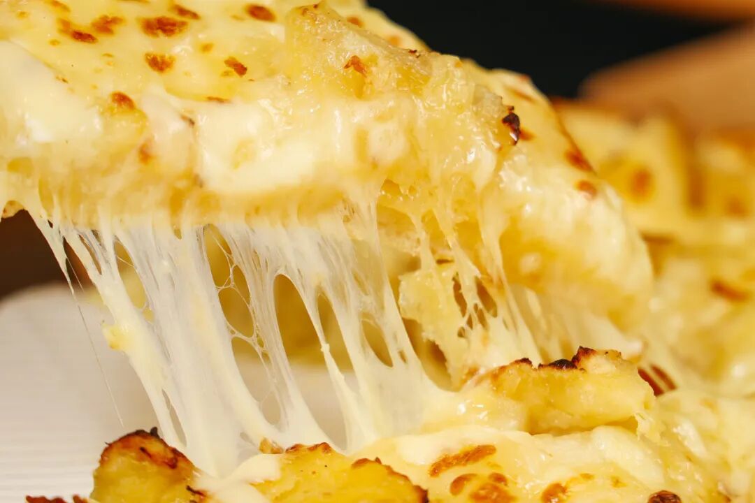 在高温烤制下,榴莲香根本藏不住,霸道又丰厚的黄金果肉入口即化,在舌尖卷起如冰淇淋般的细腻口感,奶香芝士交织其中,外脆里糯还能拉丝~