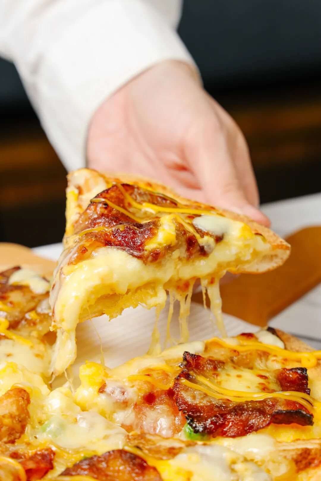 * 芝香浓郁的芝士多多双层饼底:双层饼底加芝士酱
