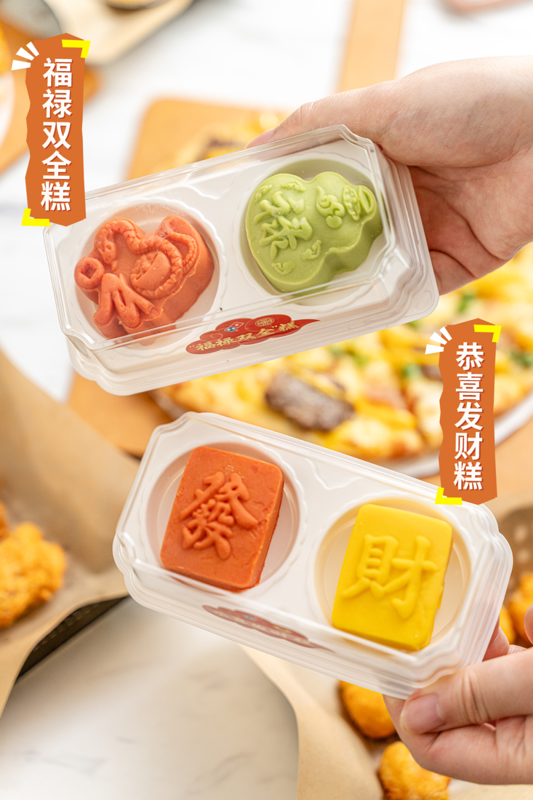 将糕点注入更多的美好祝愿,还是达美乐会玩!恭喜发财糕和福禄双全糕以传统寓意,传递最直接的“发”“财”“福”“禄”祝福,绿豆沙外层搭配不同的流心内馅,口口润心。