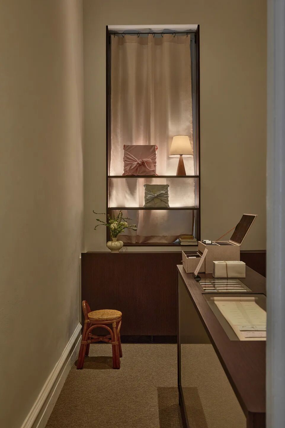 原料室陈列桂林桂花、景迈普洱、四川雪松等中国香材,与近百种珍贵精油,追溯「香自东方来」的创香、调香初心。长物亭是观夏新构建的生活美学空间,客人可体验品茗、选取花笺、篆刻印章、定制函套、包袱皮等定制化服务。深处的档案室则承载了葵园所代表的一代华侨的历史记忆,亦记录了观夏7年间东方摩登的创香历程。