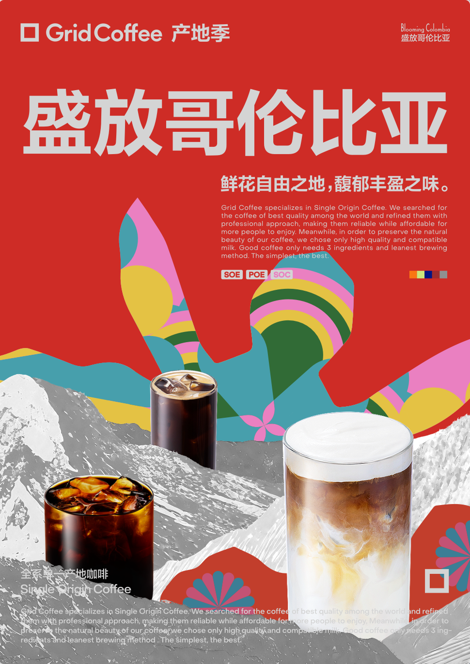 秉持“溯源产地”的初心,Grid Coffee每年推出两次“产地季”活动,以可触可感的方式让顾客真切理解真实、丰满、充满故事的咖啡沃土,品味自然沉淀的澄澈风味。2025年早春,Grid Coffee“盛放哥伦比亚 Blooming Colombia”产地季活动上线,精选哥伦比亚精品咖啡豆推出限时新品,及别具创意的周边礼品,通过多重感官体验呈现哥伦比亚咖啡豆灿烂与馥郁。
