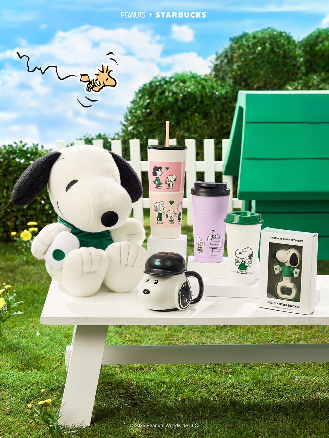 此次星巴克还推出了多款史努比联名款产品,其中包含了憨态可掬的绿围裙史努比毛绒公仔、实用性满满的史努比造型开瓶器等中国内地地区专属限定的商品,还有全球热门款史努比联名马克杯、可循环使用随行杯和不锈钢杯、2款史努比会员星礼包。