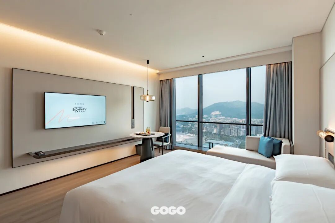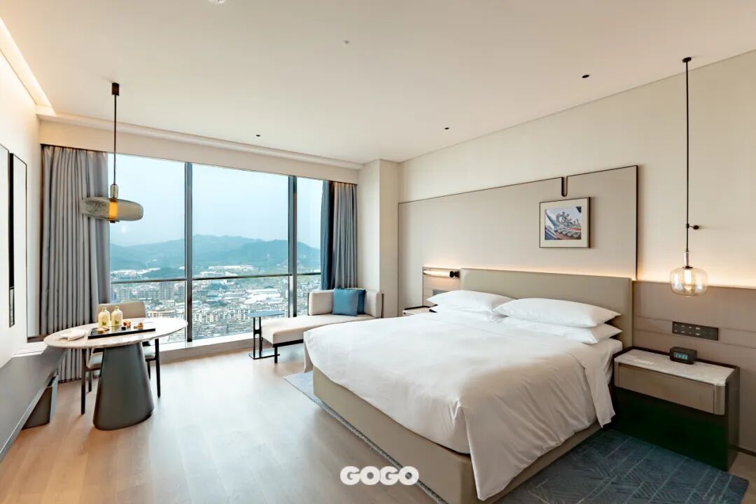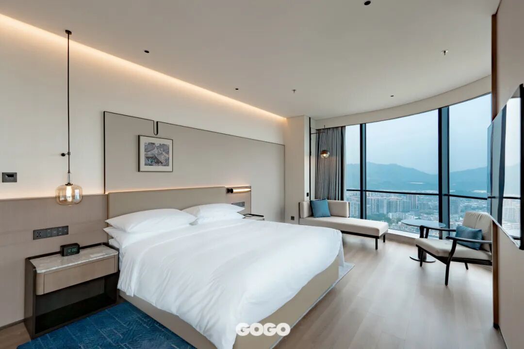 因为客房所属楼层较高,站在客房统一配备超大落地玻璃窗前,能将榕江以及周边城市景观全数尽收眼前。从清晨的微光到夜幕降临的璀璨,城市剪影与自然景致相互映衬,为客房带来光影变幻的独特景致。