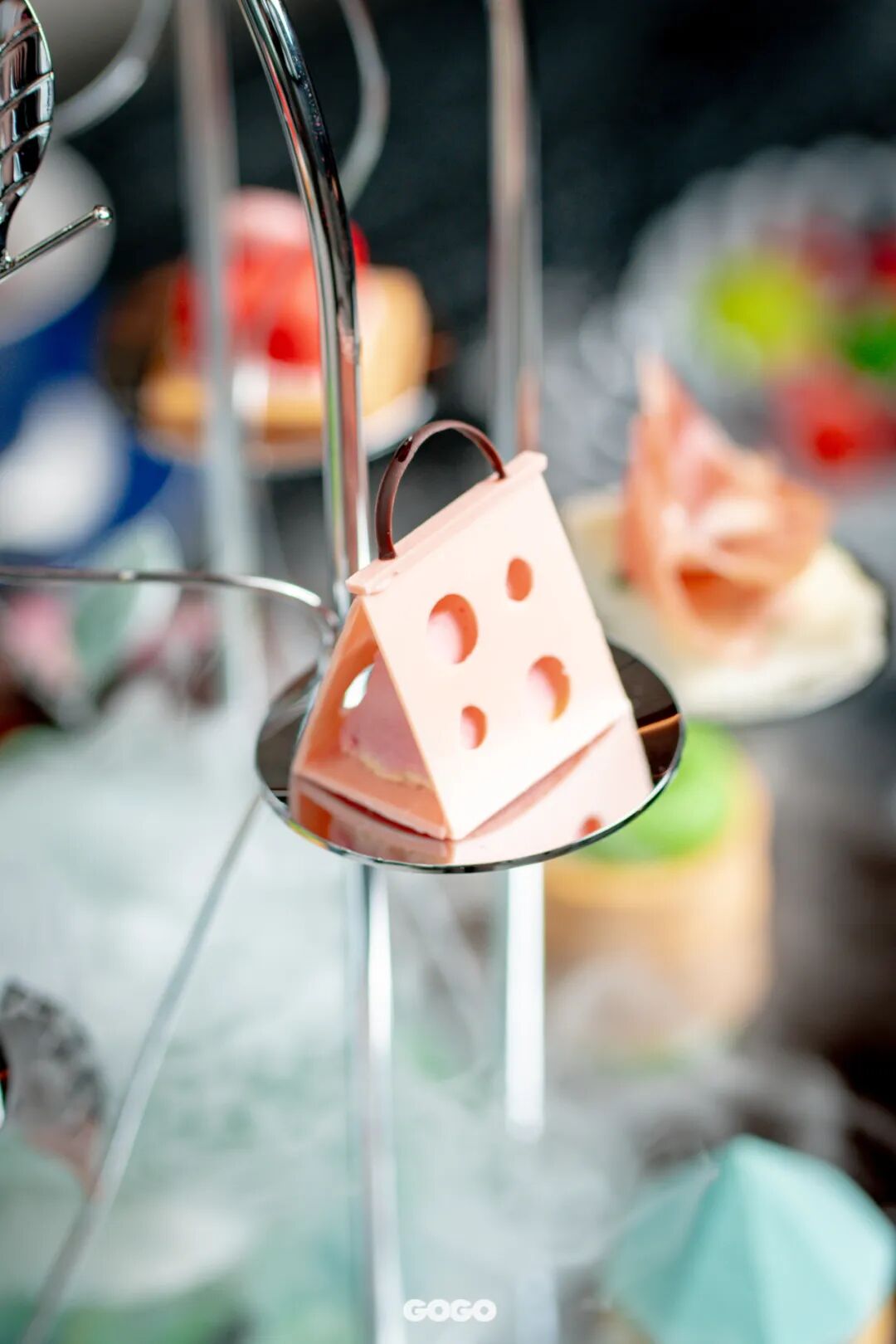 多款点心的造型,精致又有创意,比如可以拎起来的手提包和紫水晶造型等,一眼难忘,不忍心吃掉。
