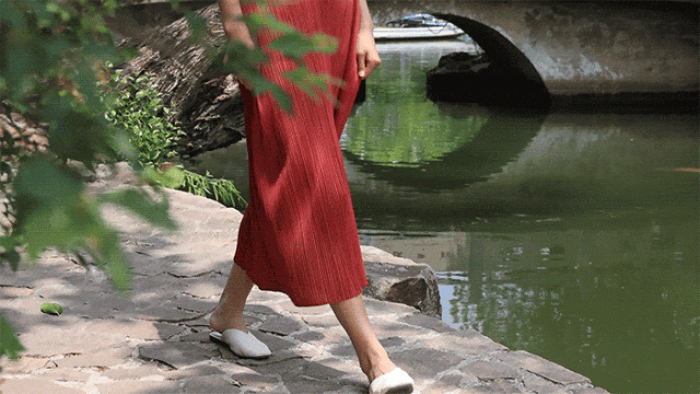 纵向的褶皱又赋予了视觉上的立体感,每一步行走都让人眼前一亮。