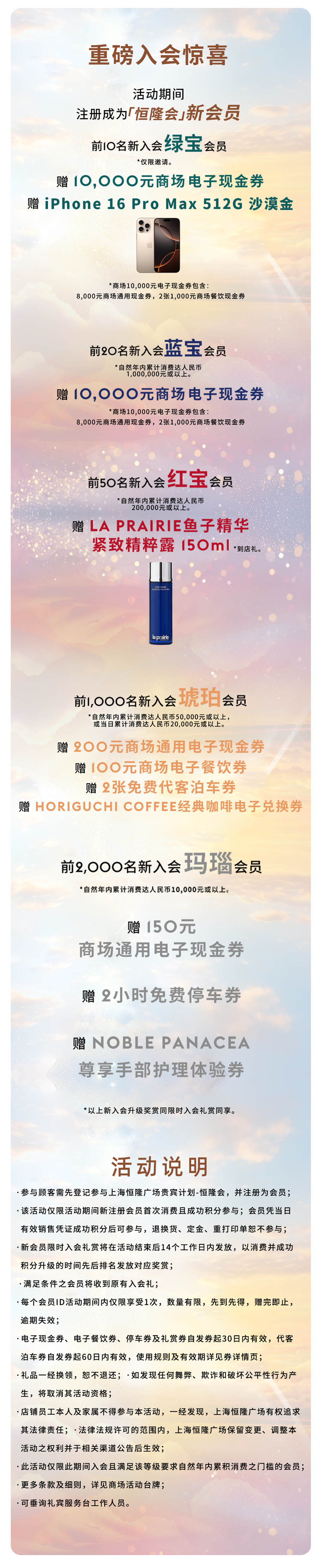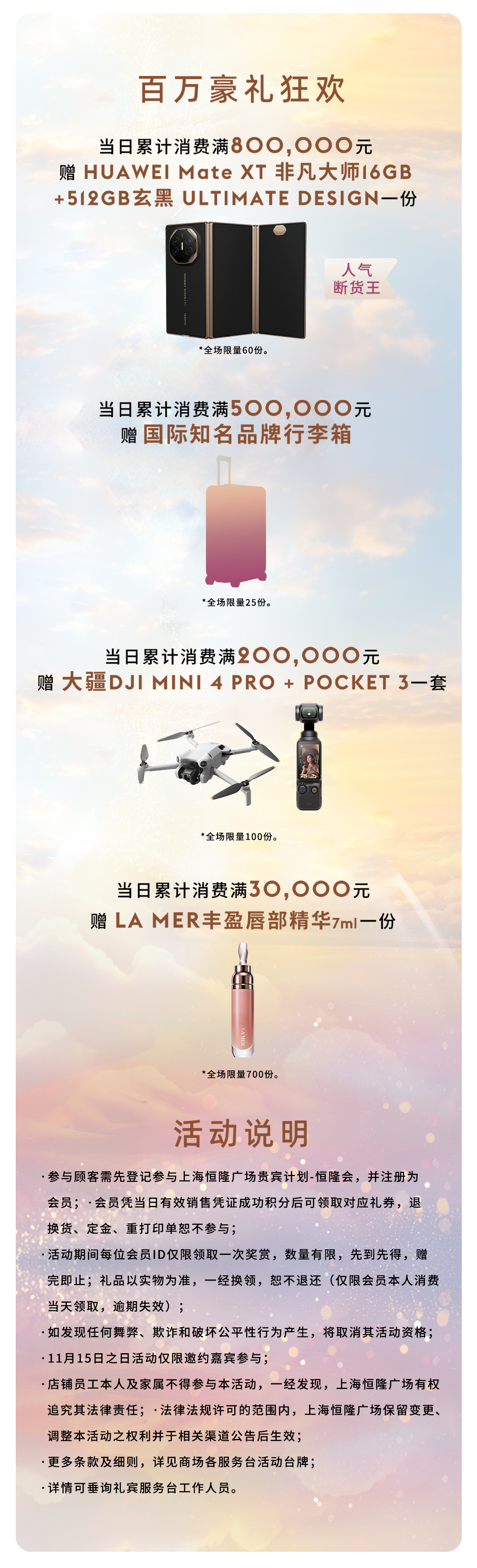 多倍积分、满额赠礼、幸运抽奖