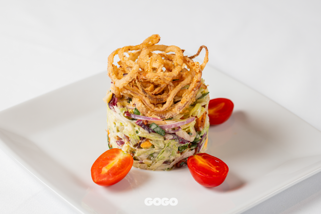 比起一般的「沙发」,这道茹丝葵沙拉造型更加精美,超过10种食材被“浓缩”在这个小球之中,顶部炸过的洋葱让造型更加有趣的同时,也香得让人无法抗拒~