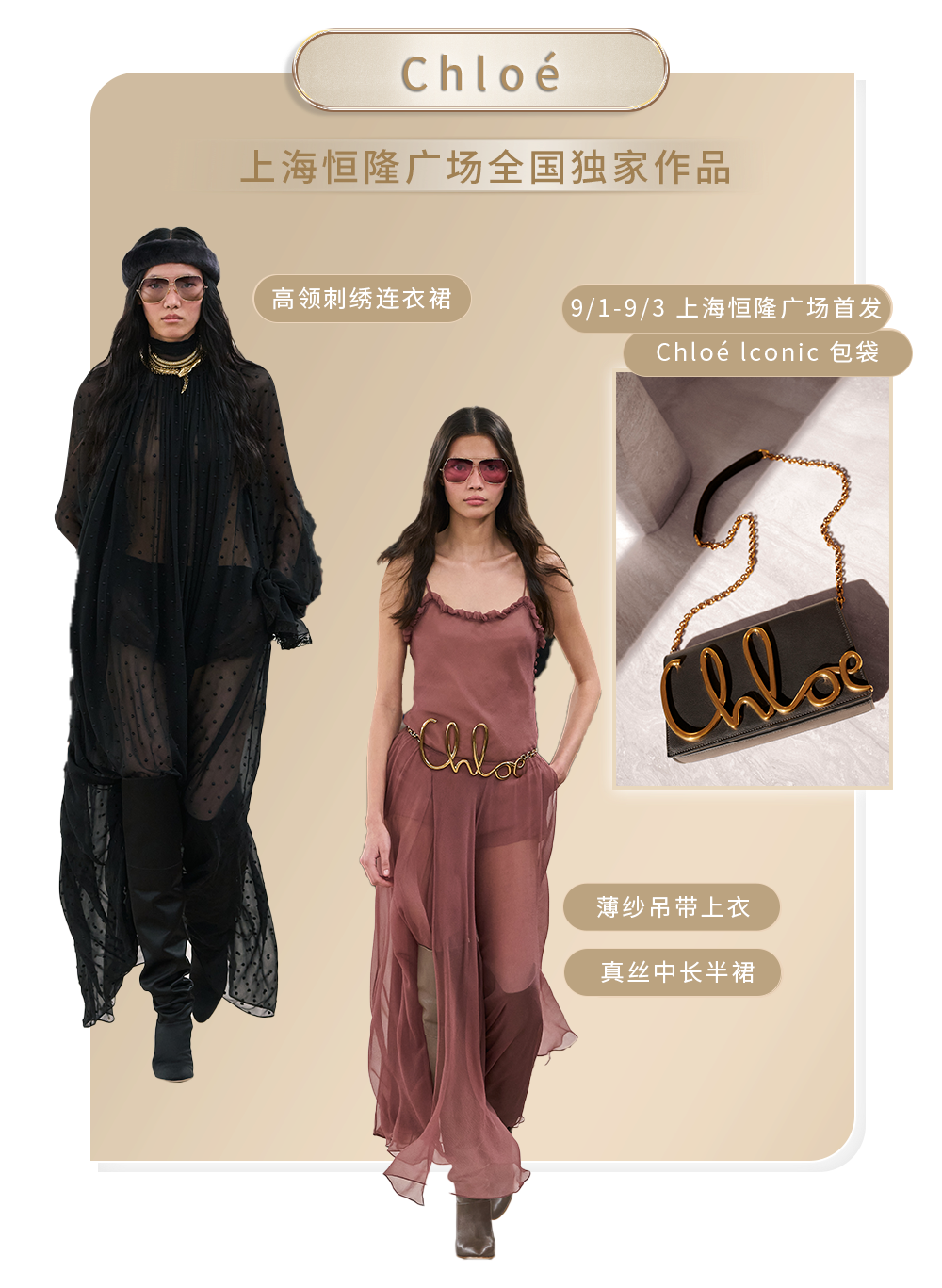 法式的浪漫风尚,将在Chloé新任设计师的创作上翩然起舞,成衣、手袋、鞋履、配饰等精品一应俱全,尽显自由女性魅力,Chloé门店将于9月1日盛大开业。