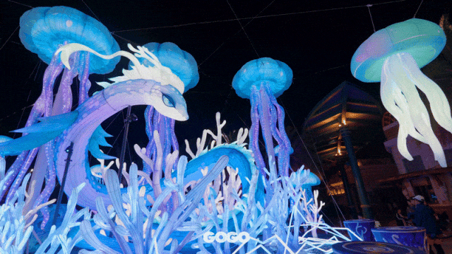 以奇幻亚特兰蒂斯海底七国故事为蓝本,融合了非遗彩灯艺术、NPC巡游互动表演、水族馆夜游、集美食与原创文创于一体的潮汐奇市、以及无人机水幕秀等多元化的娱乐元素于一身!