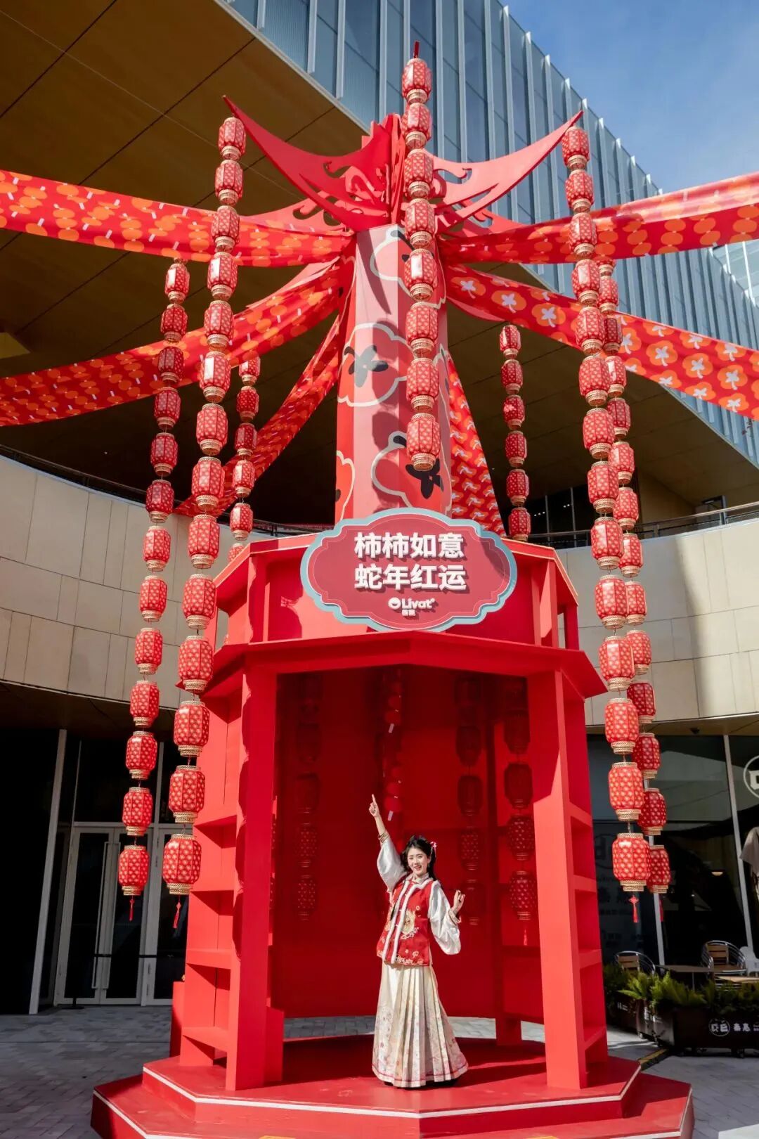 想让新年气象如繁花绚烂?悠游至荟聚2号门巨型彩灯塔帮你纳福气!绚丽多彩的灯笼铺陈喜乐氛围空间,象征着新春的生机勃勃与繁荣昌盛。