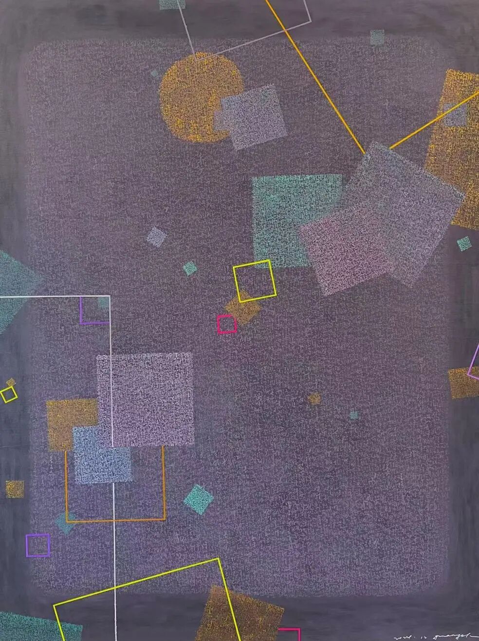 艺术于我亦然,或许某天也会戛然而止,创作从不会成为我的执著与羁绊,至于成为艺术家并呈现此展,无非造化使然。如此,我的创作,更像一场巧借艺术之名的修行,自09年抄录《金刚经》,至今已千部有余。2019年始,我的抄录不再以书法呈现。画布成为载体,文字无限叠加,终于一片混沌,心却逐渐清明。瞬息万变的大时代里,干扰我们的何止语言与文字,只有如香象渡河,截流而过,才能冲破一切无明与烦恼。因此,色彩与形式从来不是最重要的。