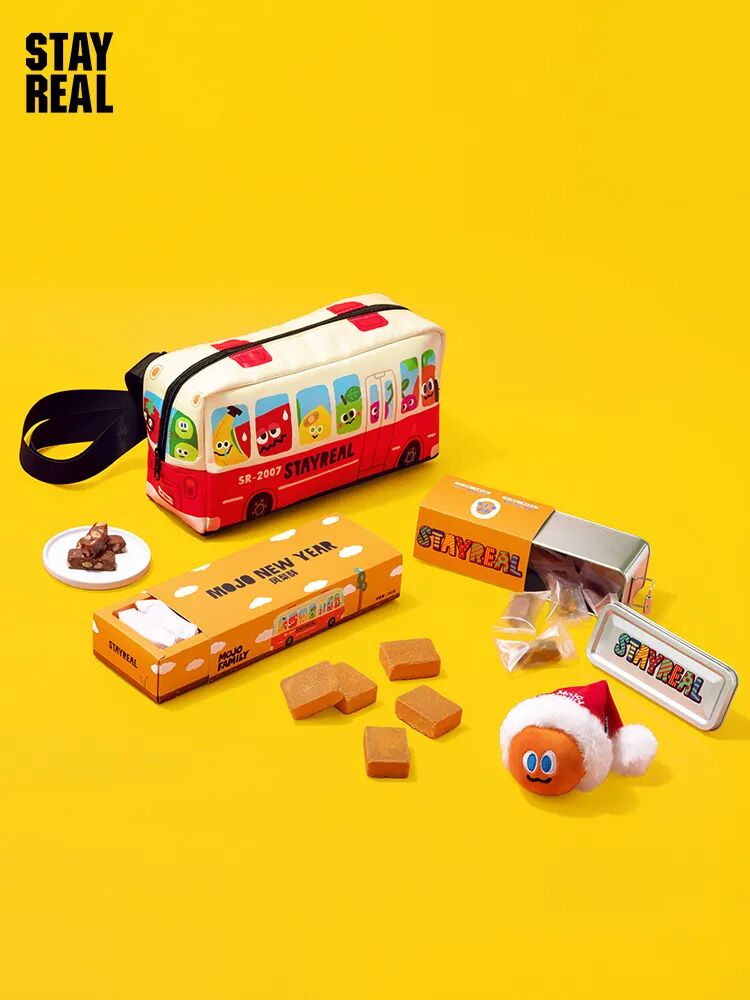 MOJO BUS 快乐出发,迈向幸运满载的一整年!STAYREAL 2025新春礼袋特别企划,以 MOJO BUS 造型的侧背包为创意设计。里面装载着新年限定MOJO CARROT公仔、美味可口的凤梨酥和新年甜蜜太妃糖果,让充满快乐魔力的 MOJO FAMILY 小伙伴们陪你一起快乐过新年,迎接好运旺旺来感受 MOJO NEW YEAR 的活力与幸福时刻!