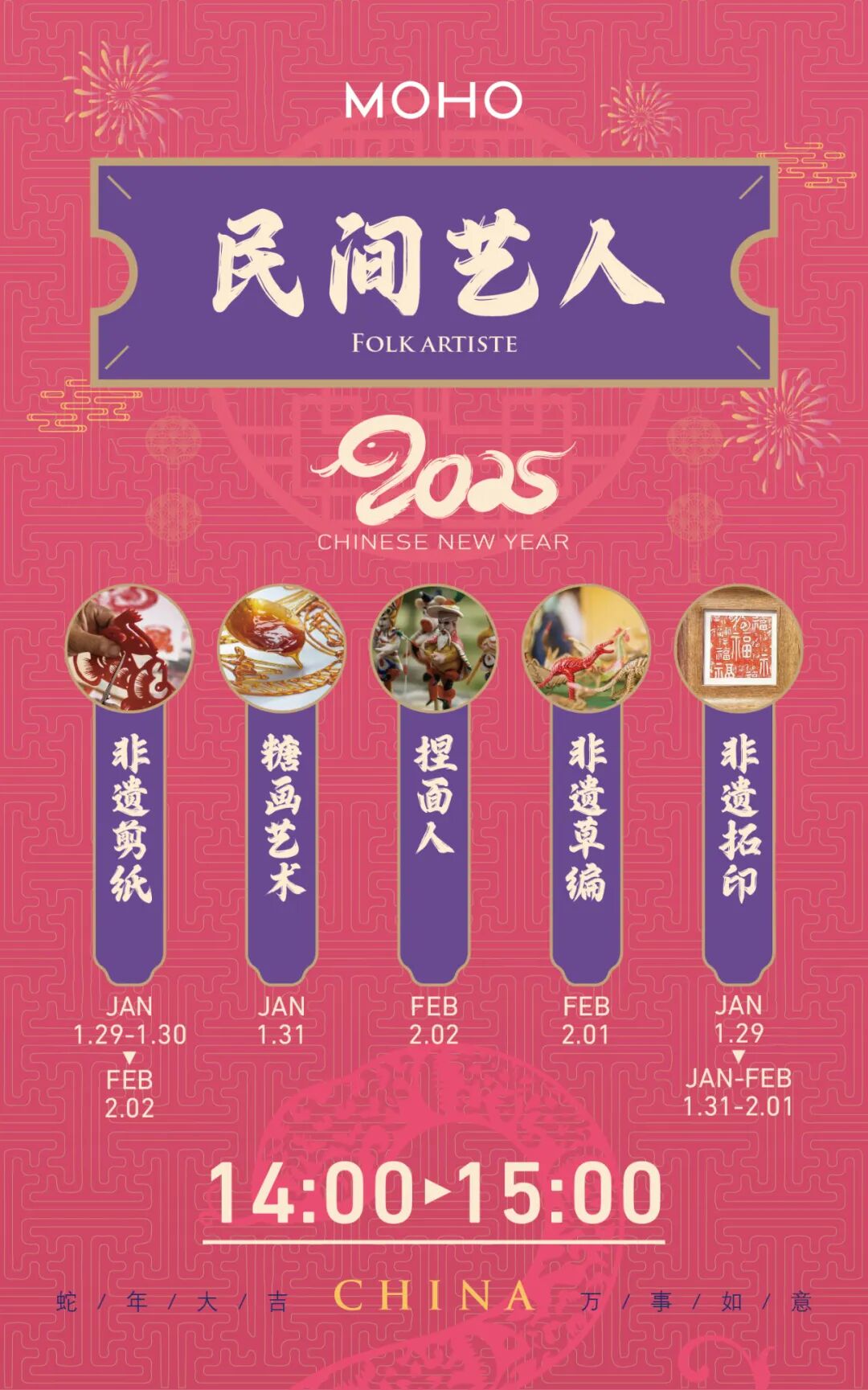 此外,2月2日将邀请舞狮“守”艺人为市民游客呈现“金蛇舞狮”表演,送上MOHO诚挚的节日祝福。