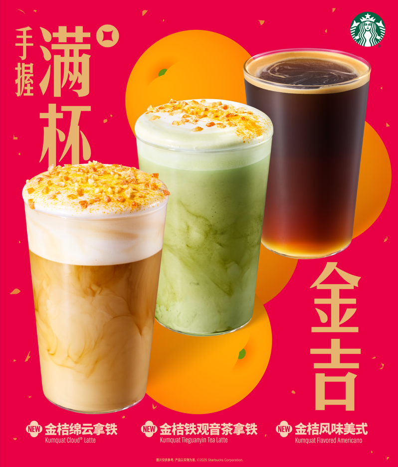 除了在家品尝一杯新春咖啡,星巴克也诚挚邀请顾客来“新春不打烊”的星巴克门店转转,在第三空间和亲朋好友共度新春好时光。星巴克最新推出的全新金桔系列饮品,取手握满杯金吉之意,为新的一年带去好彩头。三款新品糕点,则取大吉大利、万事大吉、福利喜乐之意,造型有趣、口味酸甜、层次丰富,是搭配新春咖啡的不二之选。商品方面,星巴克还推出了生肖蛇年系列、迪士尼米奇米妮欢庆系列、景德镇制青釉系列与BeenThereSeries城市杯系列等多款产品,无论是大人小孩,都能在星巴克挑到喜爱的新年礼物。