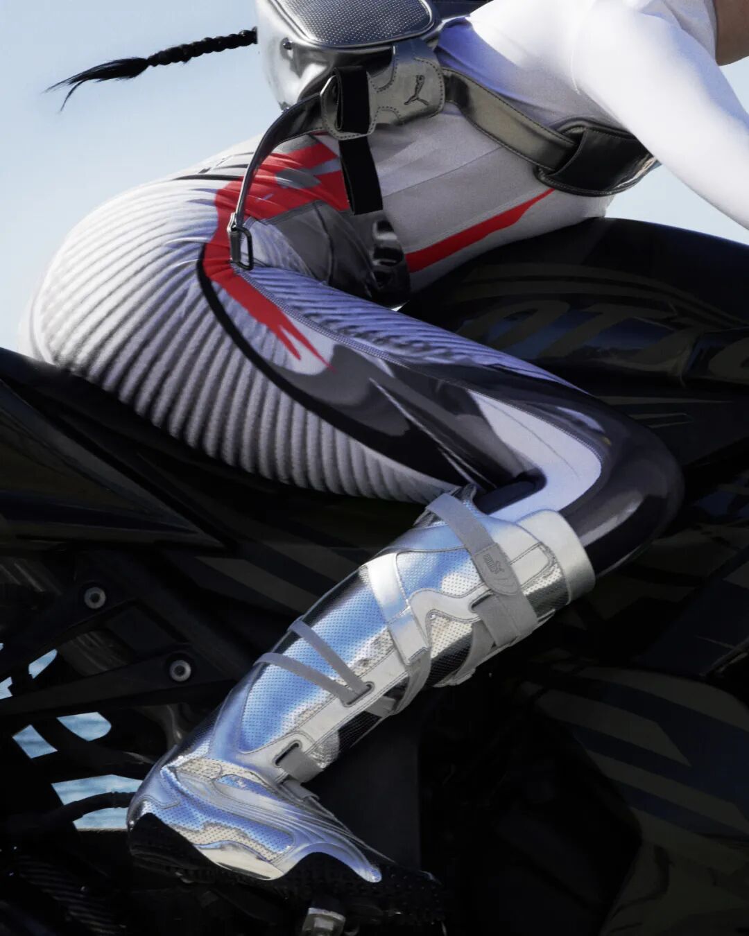 全新PUMA x Ottolinger联名系列延续了Ottolinger的惯有风格,解构、重塑传统服装概念,既融入了科技世界的机械感,又带有人类社会属性的办公室美学。服饰方面,该系列以充满未来主义色彩的表达、几何图形、线条等错位视觉效果呈现现实场景印花。在低帮鞋款与靴子的演绎上,延续未来主义主题,以金属质感皮革打造鞋身,大胆的红色与鲜明的荧光黄点缀鞋底,带来强烈的视觉冲力,尽释质感。