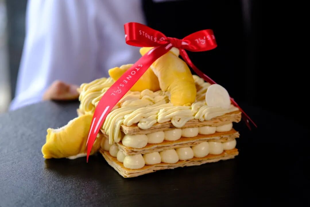 今年春季的两款新拿破仑蛋糕单品——“猫山王榴莲拿破仑”和“烟熏黑巧克力拿破仑”,也已经在上海言盐西餐厅上线。猫山王榴莲拿破仑的价格为6英寸668元,烟熏黑巧克力拿破仑的价格为6英寸398元。