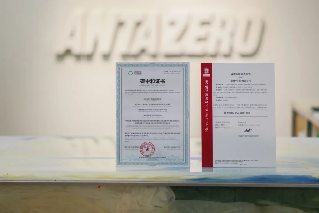 同时,安踏0碳使命店自概念启动阶段起,邀请碳管理专业机构碳阻迹。在整个装修建造过程中,通过使用旧衣物和拼接布料搭建围挡、保留原墙体和地面、采购二手设备以及空调灯具利旧等方式,实现超过30%减排。在减碳措施基础上,安踏邀请权威认证机构必维,针对这一阶段的所有环节进行了“碳中和”认证。店内精选符合安踏可持续规范的商品带给消费者,其中最新上市的产品“空气甲”夹克与“马赫4代”跑鞋亦进行了碳足迹的盘查计算与碳中和认证。