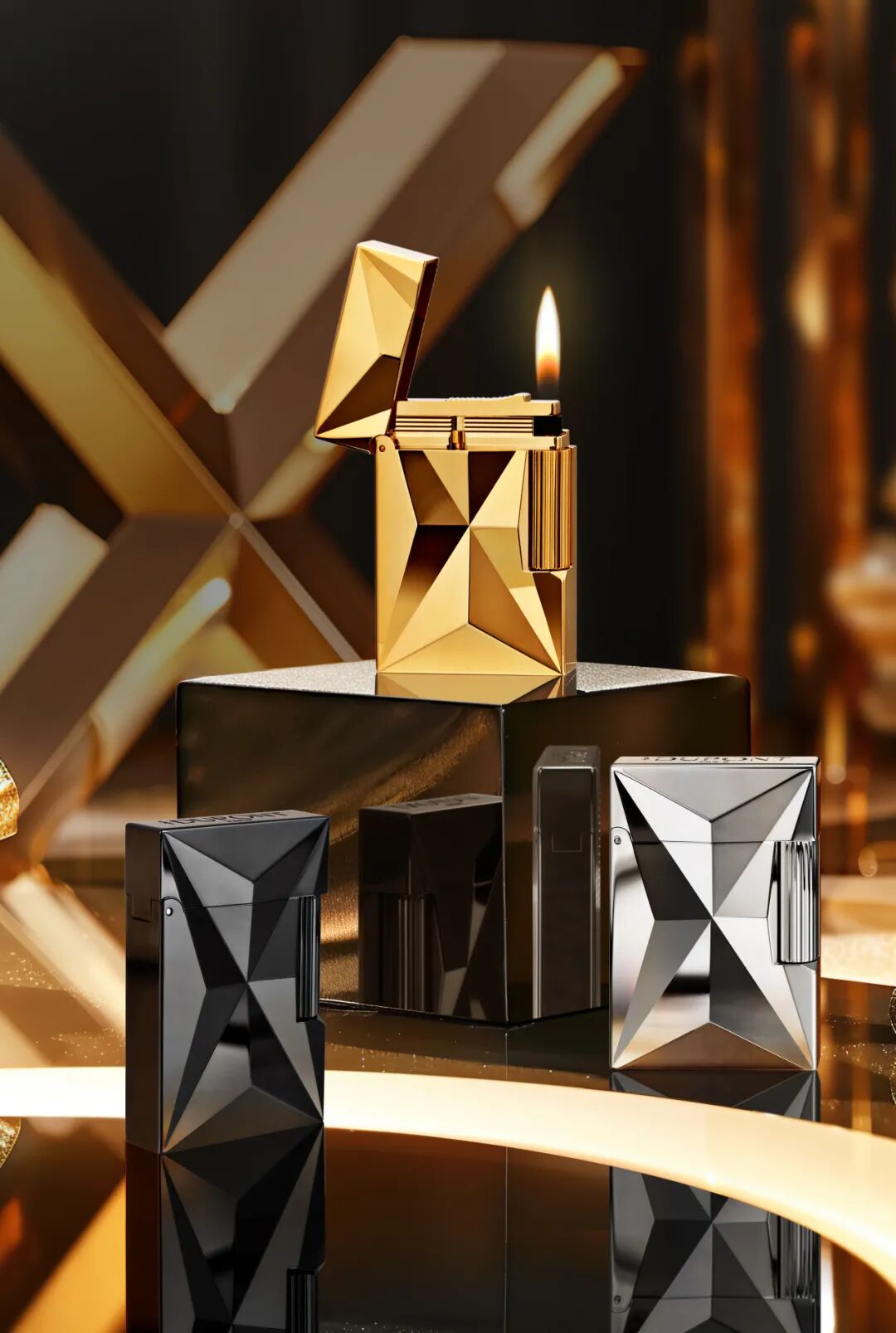 FIRE X 淬火系列灵感源自化学中象征火焰的三角形符号,通过法国都彭娴熟的玑镂雕刻工艺,勾勒出立体的线条图案,于方寸间同时致敬品牌的两大传奇匠艺——金匠及火艺,在现代设计视角下俊逸登场。秉承了品牌深厚的文化底蕴,以醒目的3D “X”纹理重塑经典火焰菱纹,全新淬火系列带来包括 Ligne 2 small 朗声精致系列打火机、Biggy 巨能蓝焰系列打火机、Slimmy纤巧蓝焰打火机、Twiggy精致防风打火机及同系列雪茄剪。