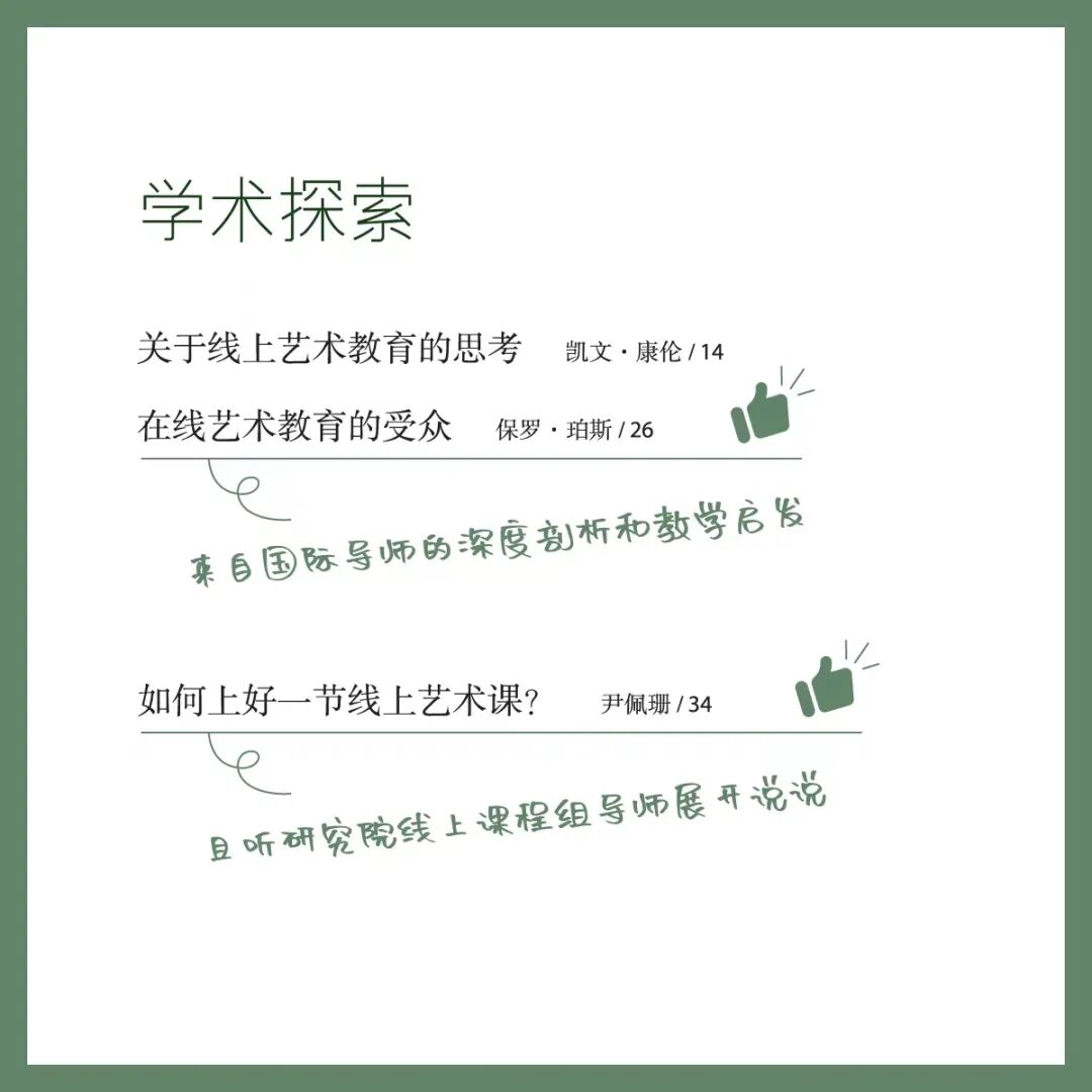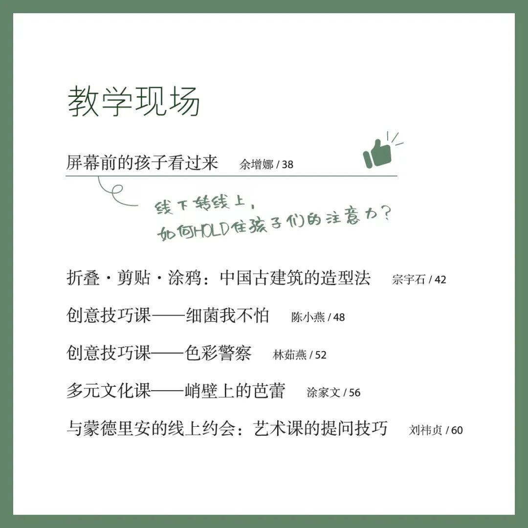 数十年来,随着互联网时代的到来,人工智能、5G等新兴科技的蓬勃发展,人们接受教育和育人的方式早就发生了翻天覆地的变化:打开电脑便能得到海量资讯;学习也不必局限于书本,各种新技术、新媒体为我们打开新世界的大门;我们甚至可以足不出户,随时随地凭一个二维码就进入名师大家的课堂⋯⋯时代与科技的进步,使得线上教育应运而生,而反复的疫情又大大加速了线上教育的发展,为行业带来了新的机遇。但随之而来的,还有无数质疑和担忧的声音——当昔日的学习阵地由学校转移到了“线上课堂”,孩子能否适应?隔着屏幕,没有了老师面对面的交流和指导,孩子的学习效率和效果是否能够保证?身为艺术教育者,我们敏感且深刻地意识到:传统艺术教育向线上转移,需要面临很多挑战——如何设计高质量的线上艺术课堂、如何攻克线上艺术教学的技术难题、如何利用线上媒介为孩子创造更好的艺术体验⋯⋯与此同时,线上教学对艺术老师的授课能力也提出了更高的要求:远程授课,老师们要如何把握课程进度与课堂秩序?他们需要尽快熟悉线上平台的操作、需要更精炼且清晰的表达、需要更有感染力的教学方式等等,这些都是亟待摸索、探讨和解决的难题。科技赋能,学无止境,无论是机遇还是挑战,教育者理应走在前头,勇于打破固有认知,敢于创新实践。只有做到与时俱进,面向未来,才能引导并支持孩子们可持续地学习,不间断地从艺术中获得养分和能量,成为全面发展与内心丰盈的人。在这个过程中,进一步培养孩子的审美力、创新力、思考力,构建健康而完整的独立人格。不管未来教育的工具和手段如何升级换代,孩子始终能快速适应,快乐学习。面对新事物的挑战与考验,孩子依然能从容应对,自信成长。本期《early》,让我们一起围绕“线上艺术教育”展开思考和讨论,探索如何在瞬息万变的科技时代,和孩子们一起无惧变化,保持学习,迈入更有智慧的未来。