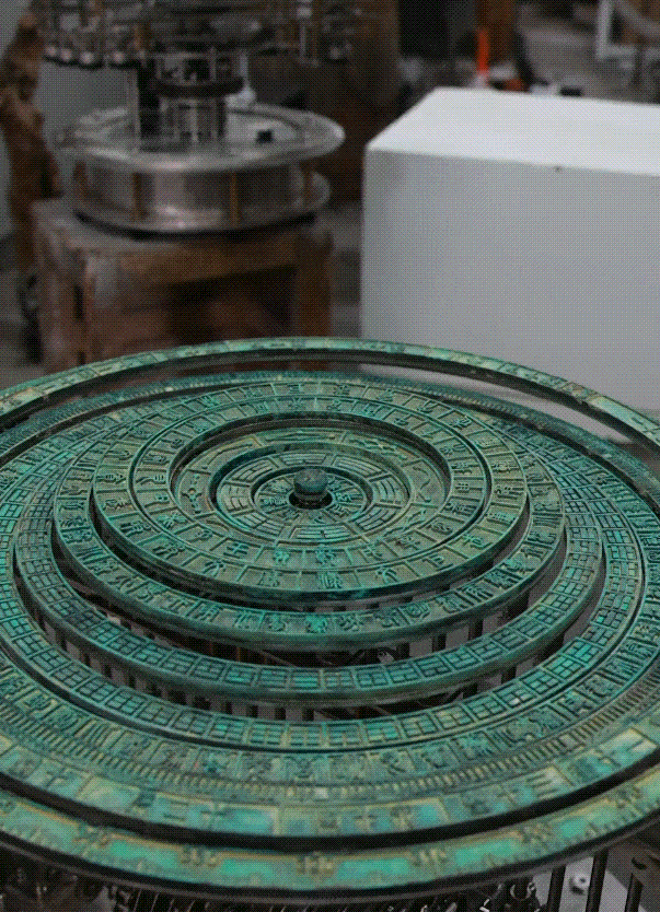 中国美院雕塑系聂士昌的《滴动仪》以机械装置模拟水滴掉落罗盘、扩散波纹的动态过程,将科技与传统文化巧妙融合;