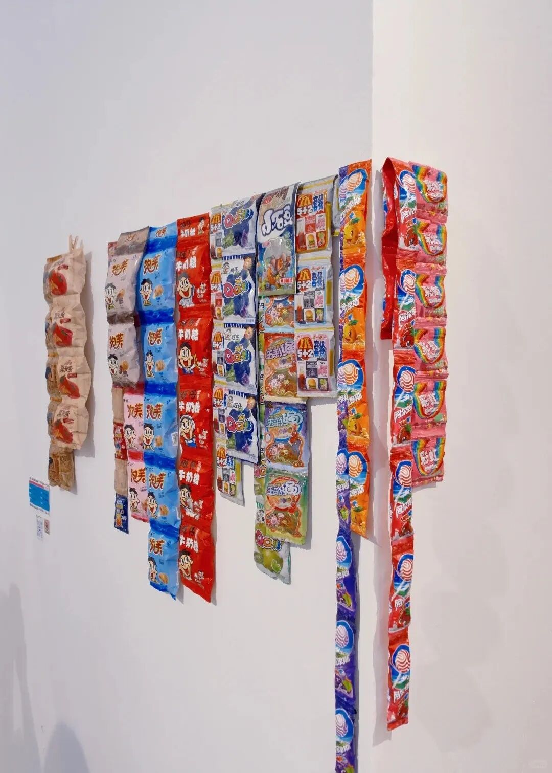 四川美院今年还有个出圈的作品《木糖纯》。乍一看,很多观展者还以为把棒棒糖和小零食直接拿出来参展,其实这是一个木雕作品。