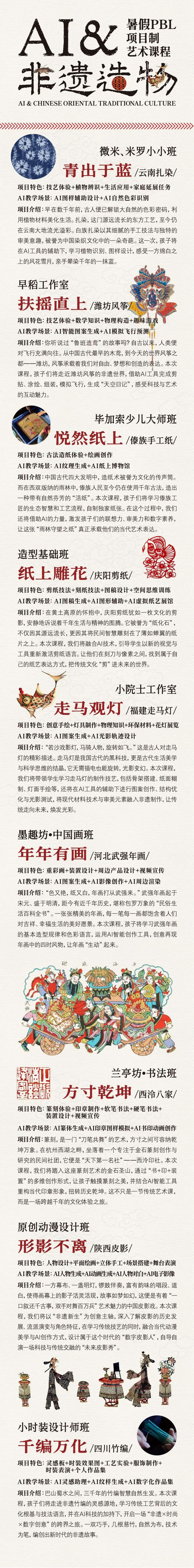 今年暑假,杨梅红PBL项目制课程以“AI&非遗造物”为主题,邀请所有孩子变身成为文化小创客,将古老的非遗手艺与当下最火爆的AI技术相结合,大胆实践,赋予传统非遗全新的面貌和活力。