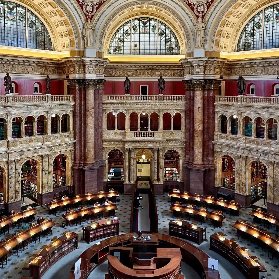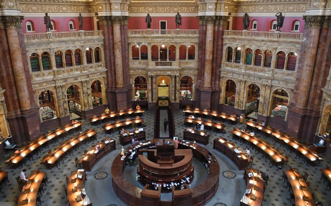 在美国国会山,还有一座宏伟严肃的建筑,它就是美国国会图书馆。该馆收藏了超过1.5亿件藏品,包括书籍、乐谱、音频资料、照片、地图、电影和手稿等,书架长度加起来可达848公里,是现今世界上最大、最重要的图书馆。