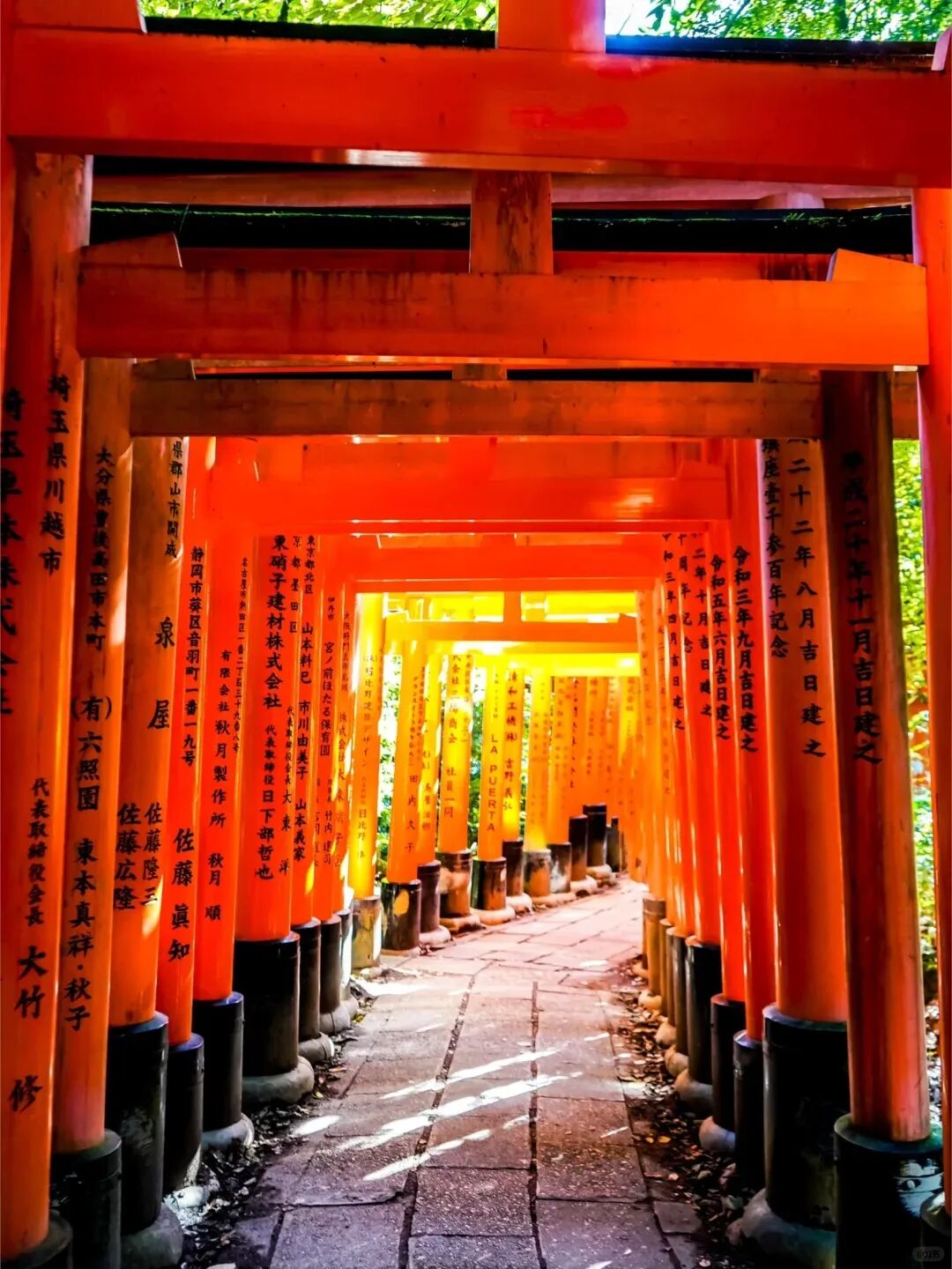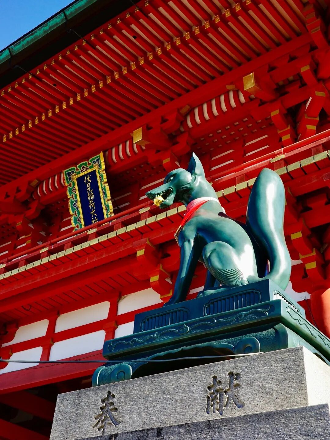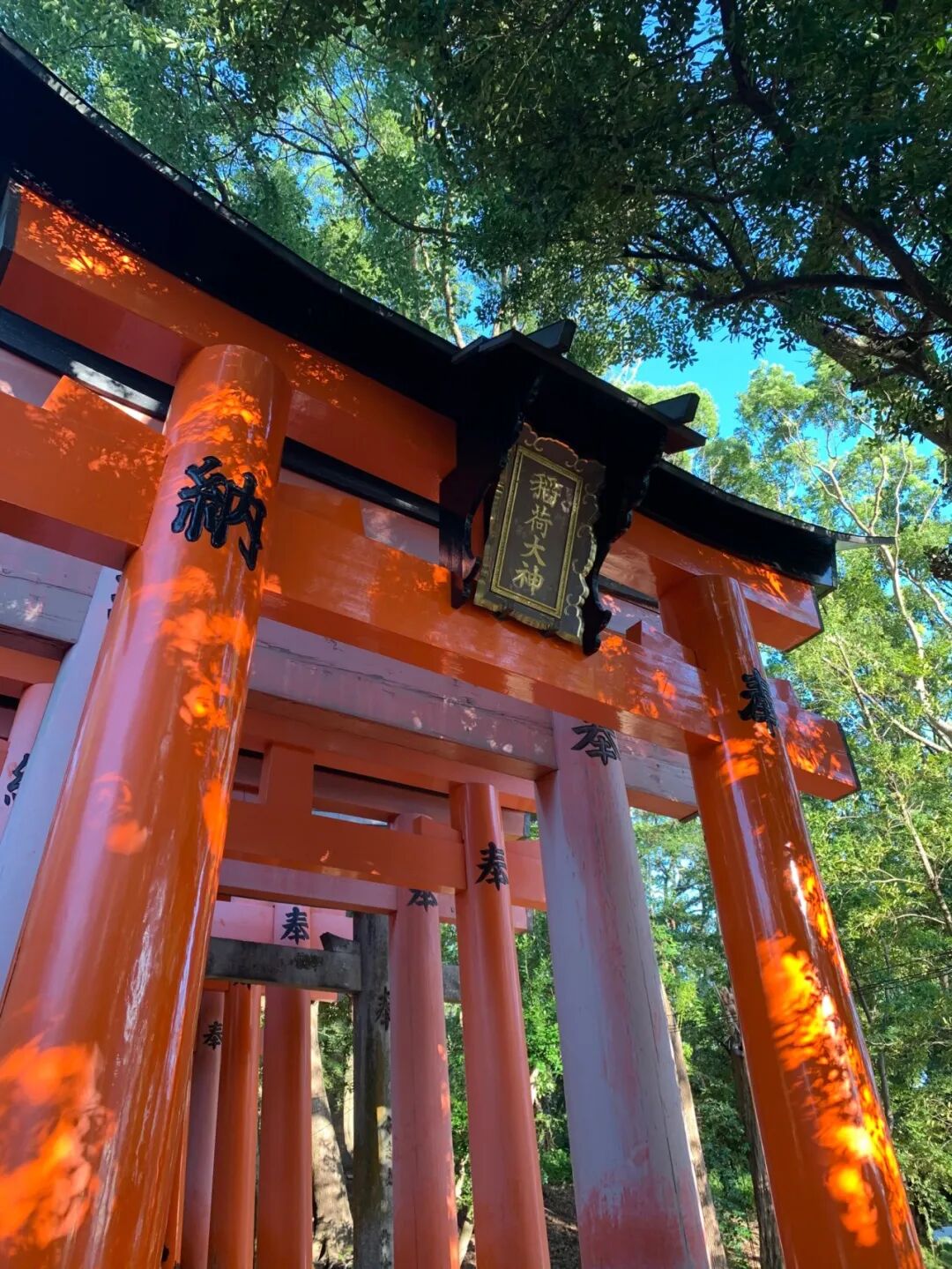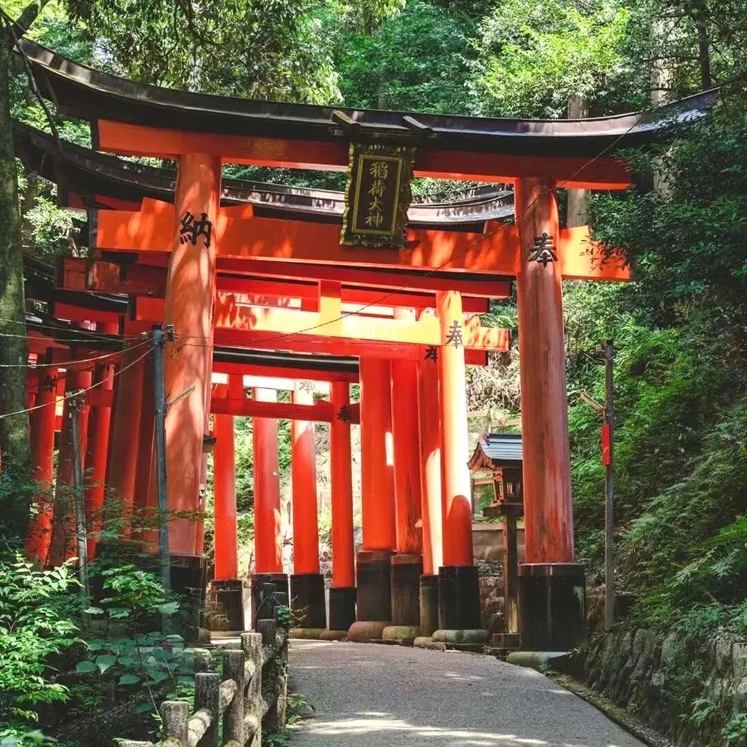 上午,我们乘车前往京都,去到京都市内古老的伏见稻荷大社,参观这里有名的朱红色“千本鸟居”。成百上千座朱红色鸟居构成了一条通往稻荷山山顶的通道,左右两旁还伫立着几十尊狐狸石像,走在其中,能感受到浓郁的本土人文风情。