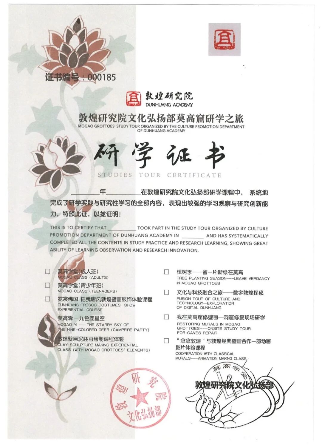 莫高学堂研学证书