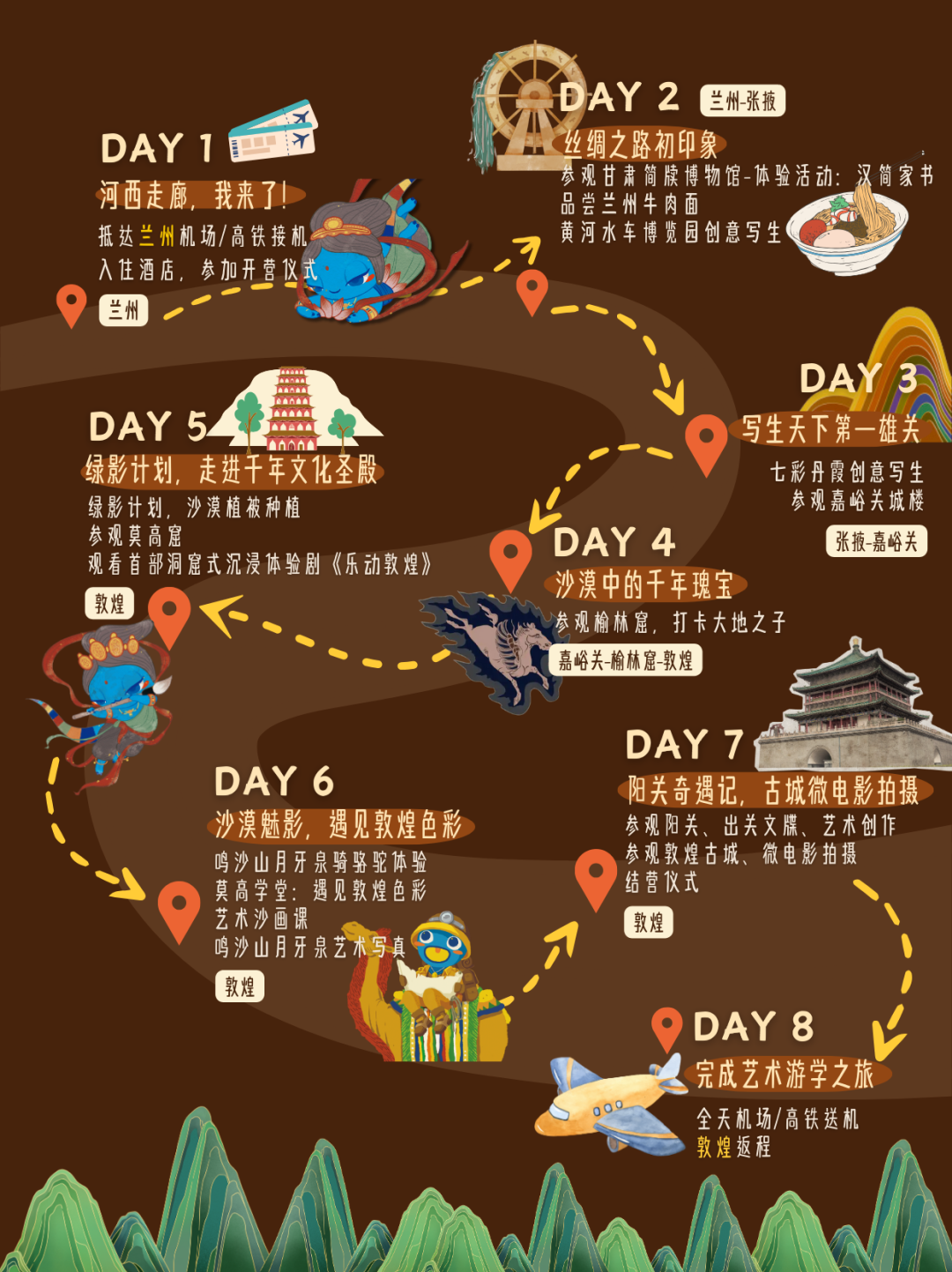今年暑期,小小敦煌守护者将再次出发,我们重游中国古代丝绸之路,探访河西走廊,通过聚焦地质研究、生态治理、文化遗产保护和在地艺术创作等多个维度,以自己的实际行动和艺术力量,延续敦煌之美。