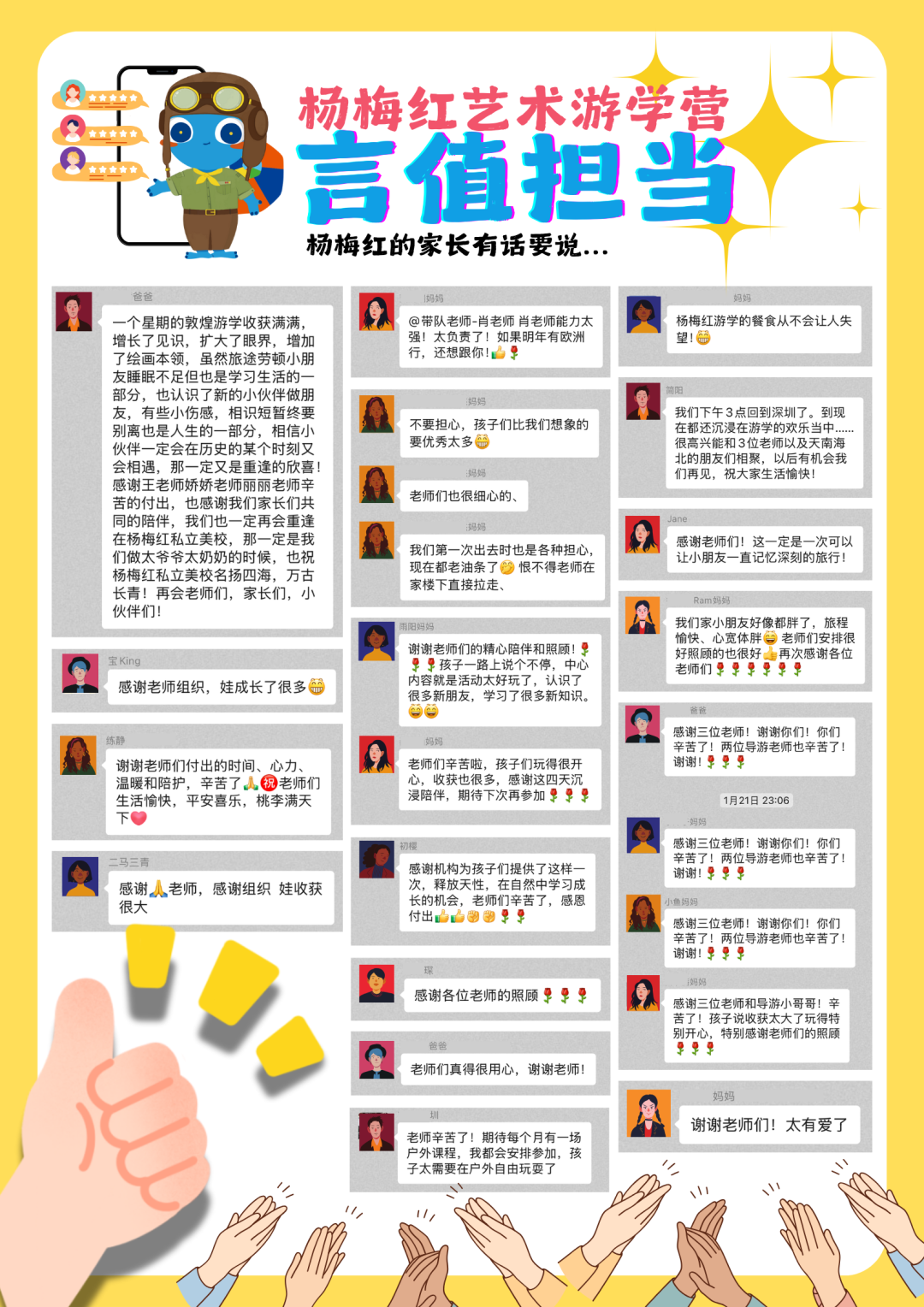 杨梅红艺术游学营由杨梅红艺术教育集团总部(深圳)精心策划和统一组织,欢迎感兴趣的家长前往教学中心前台咨询报名。如遇游学行程与总部公布内容不符,请谨慎对待。想知道更多精彩游学信息,可关注公众号“杨梅红艺术教育”,或致电游学小秘书:18124075315(微信同号)。