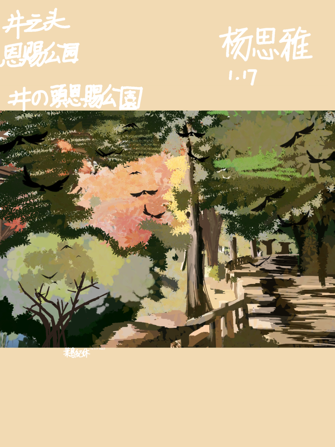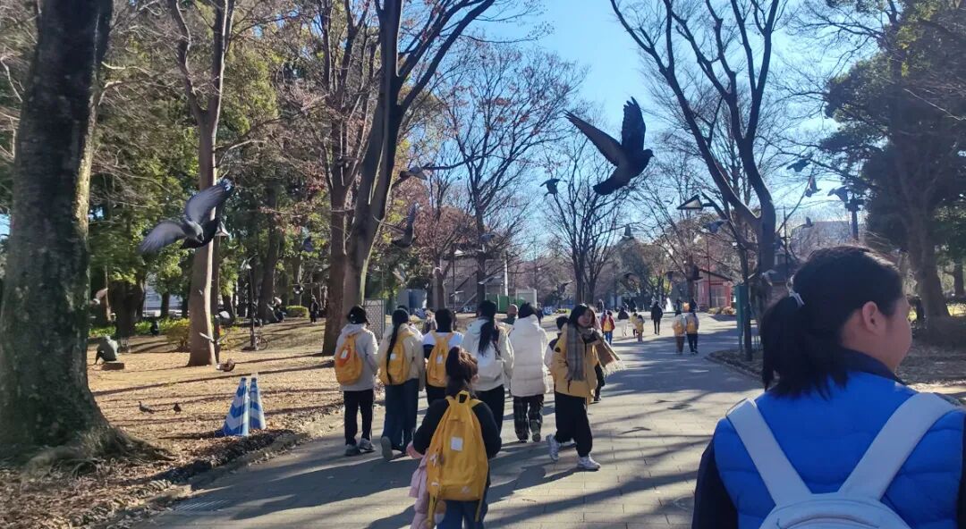 今天上午,阳光明媚,我们首先去到上野公园完成横幅签绘创作。上野公园是日本的第一座公园,这里不仅历史悠久,而且景色优美,在这里进行户外艺术创作是再合适不过的了。