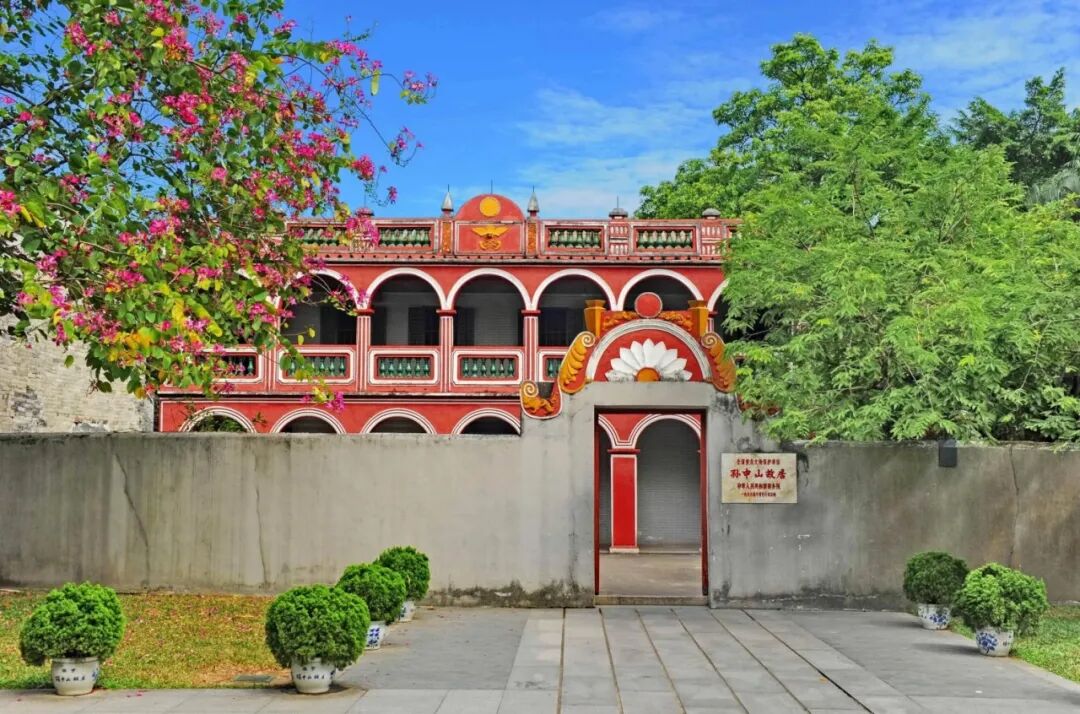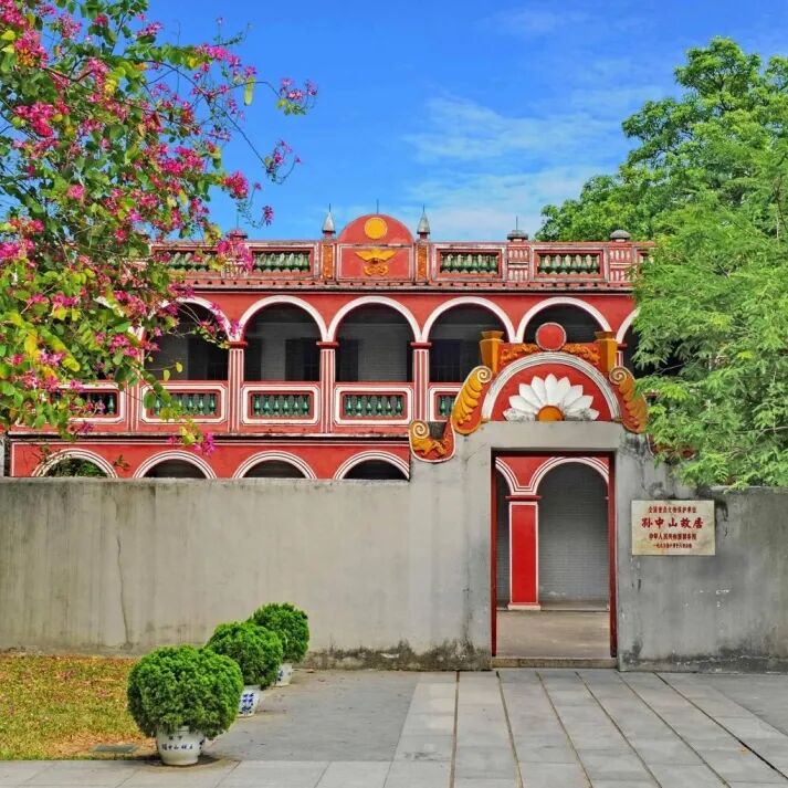 这栋红色、前卫的南洋骑楼风格建筑在整片传统岭南村落中是不是显得别具一格,十分亮眼?它就是孙中山先生在1892年,亲自主持修建的住所。如今,孙中山故居还按照孙中山在此生活的情景布置,院内有孙中山当年亲手种下的酸子树,还保存了大量珍贵文物和资料,包括他少年时期的生活用具、家族照片、书籍等,有助于我们了解孙中山先生在青少年时期的生活和求学经历,感受他为国家和人民无私奉献的精神。