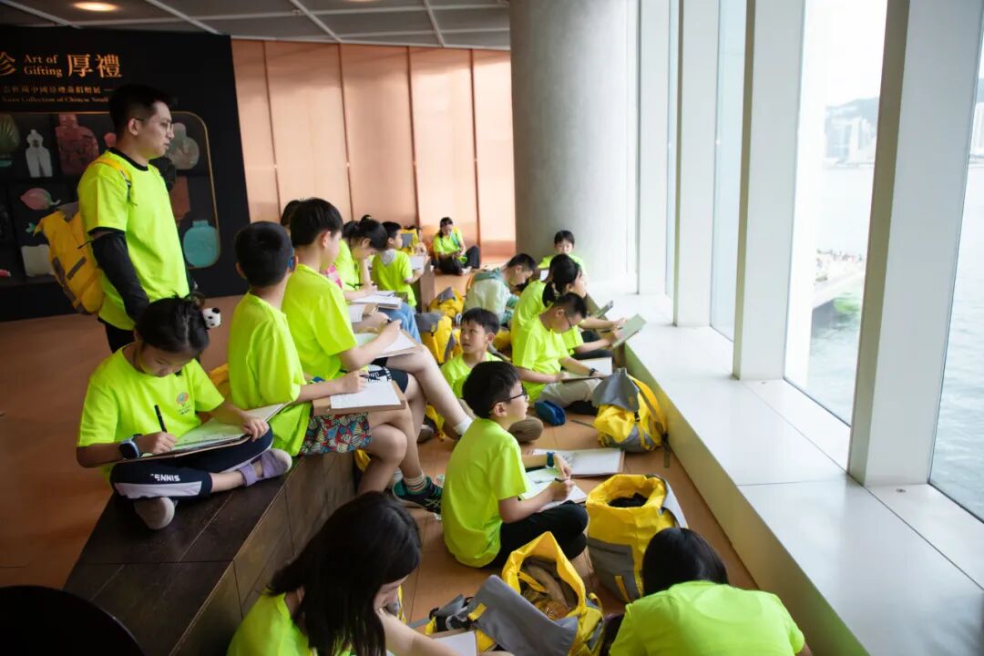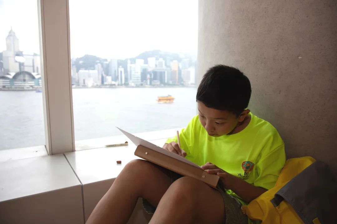 孩子们观赏完大师的杰作,来到艺术馆的落地窗前休息,一边欣赏开阔的维港景色,一边拿出画笔描刻远处高楼的剪影,捕捉波光粼粼的水面以及徐徐前行的船帆。此刻,美学与现实、艺术与都市在孩子的画面中交融,化作成长的最美底色。