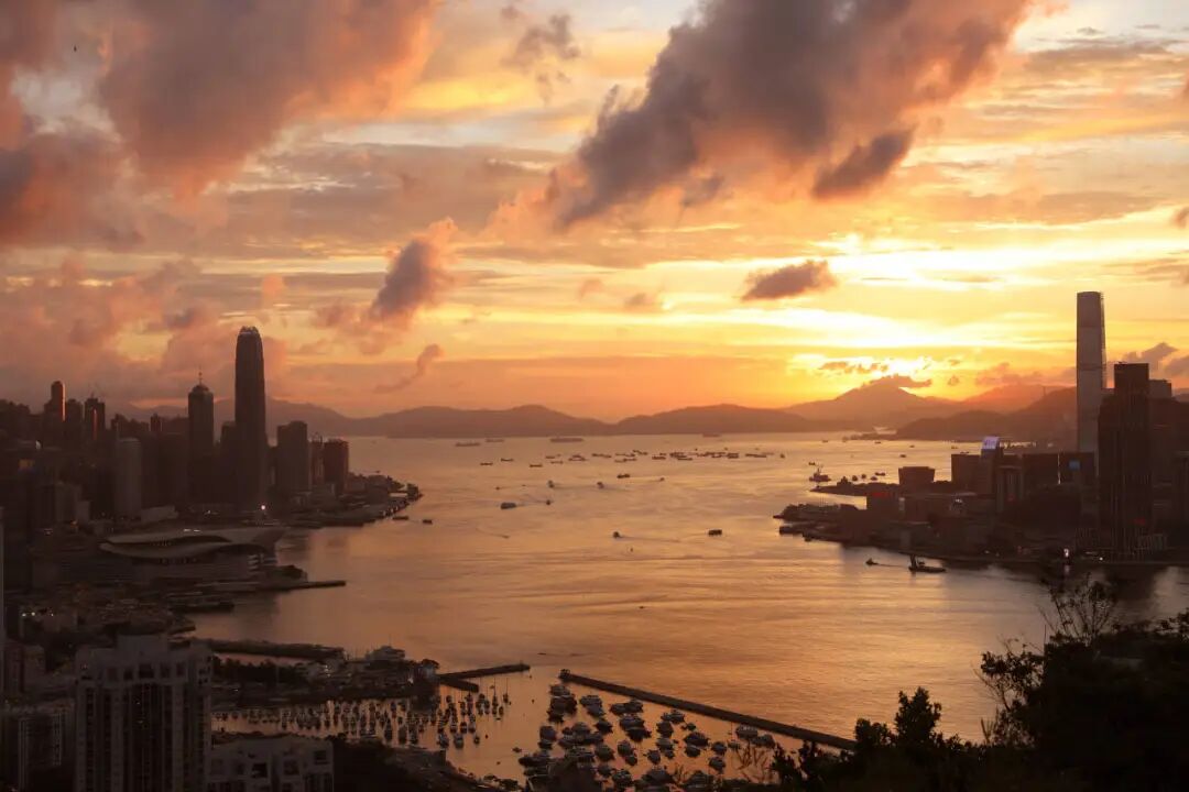 晚霞中的维多利亚港