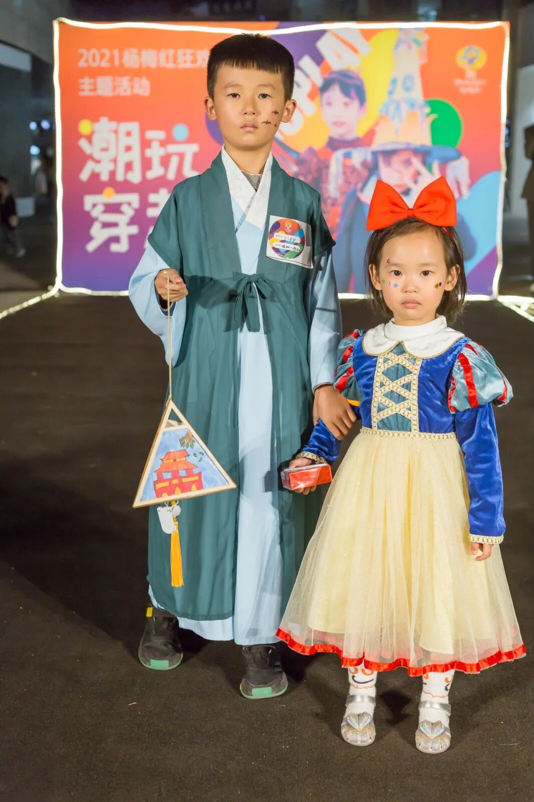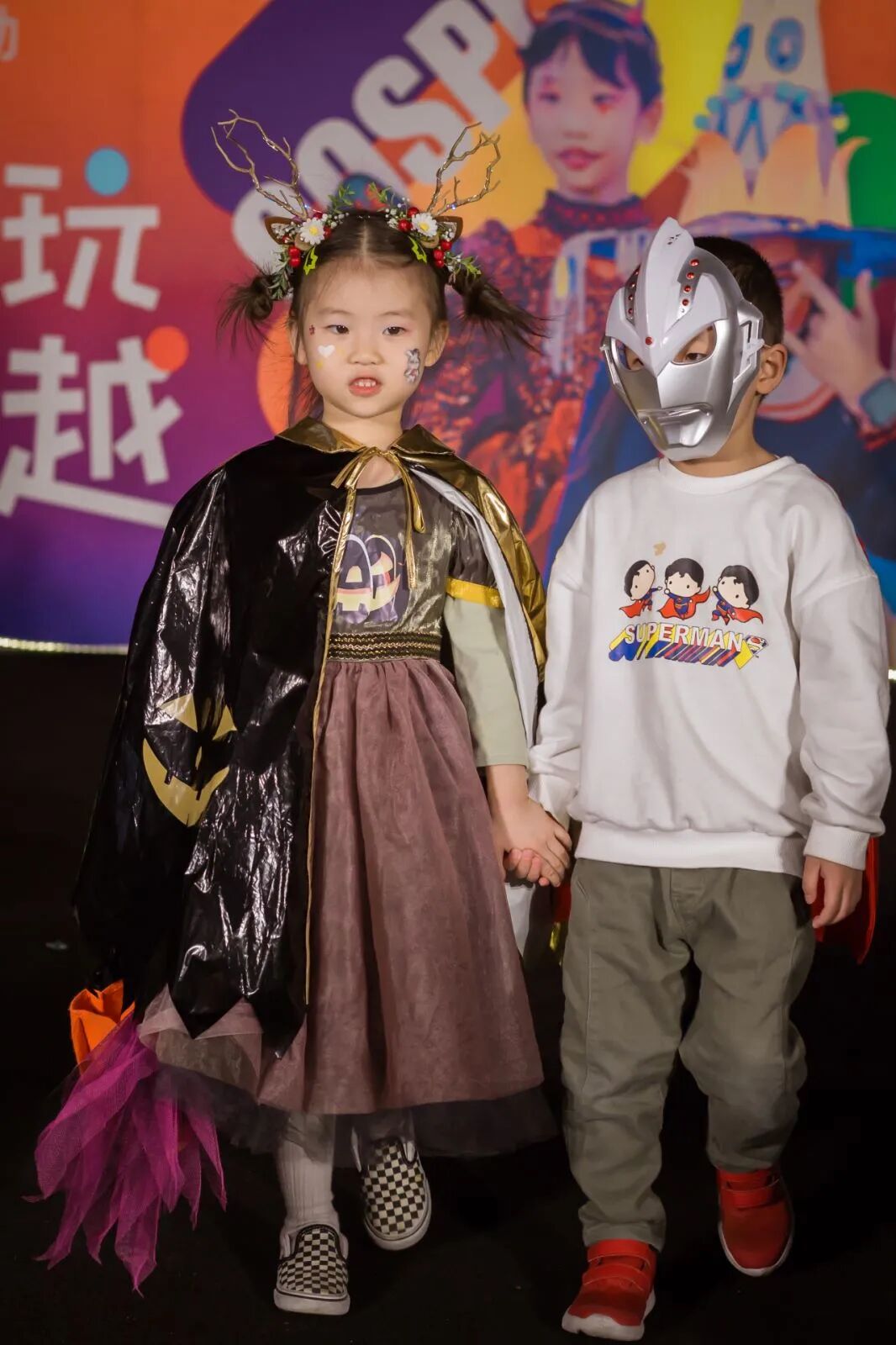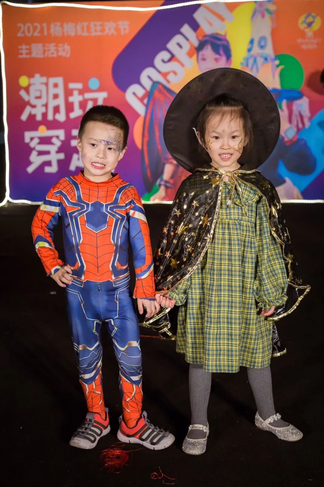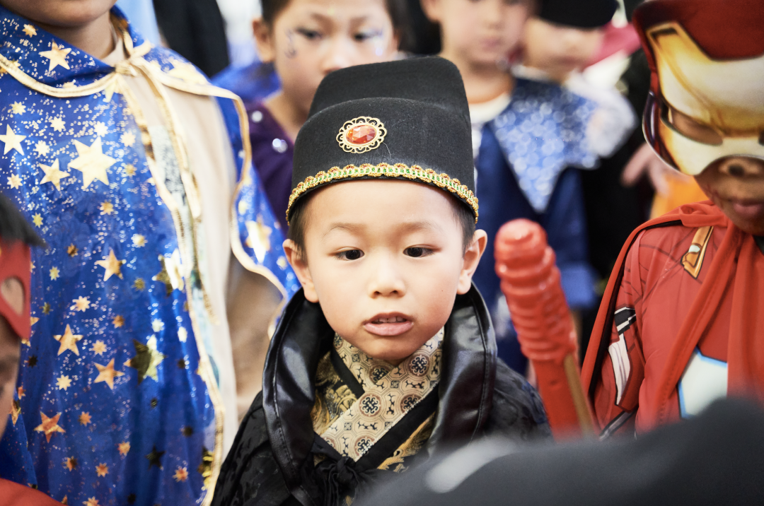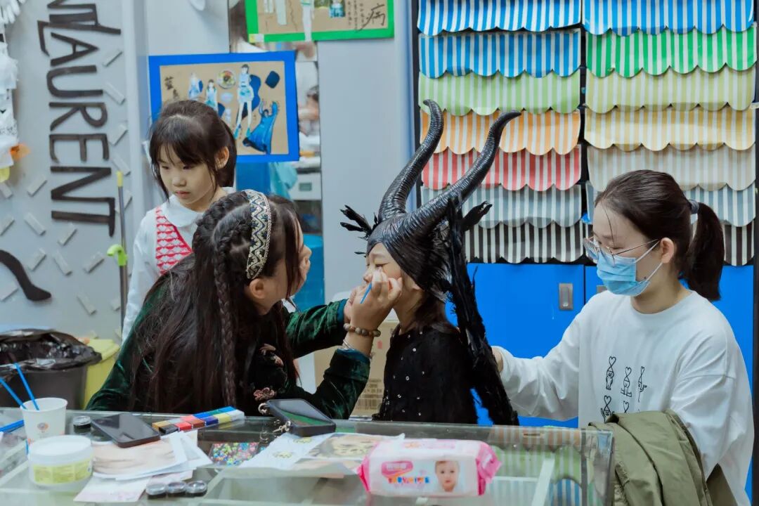 孩子们用奇装异服、搞怪妆容,
