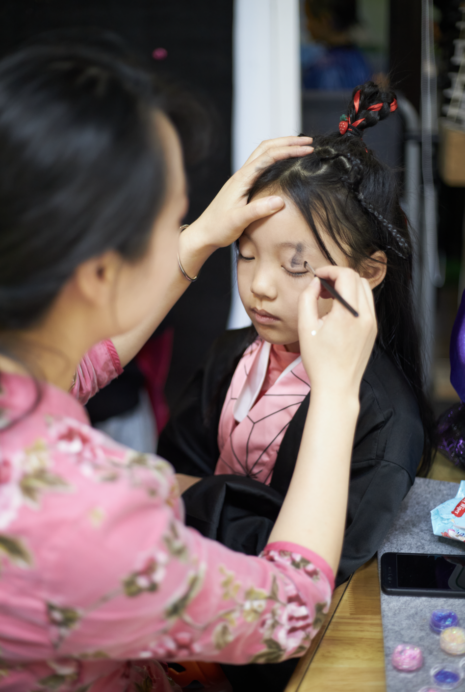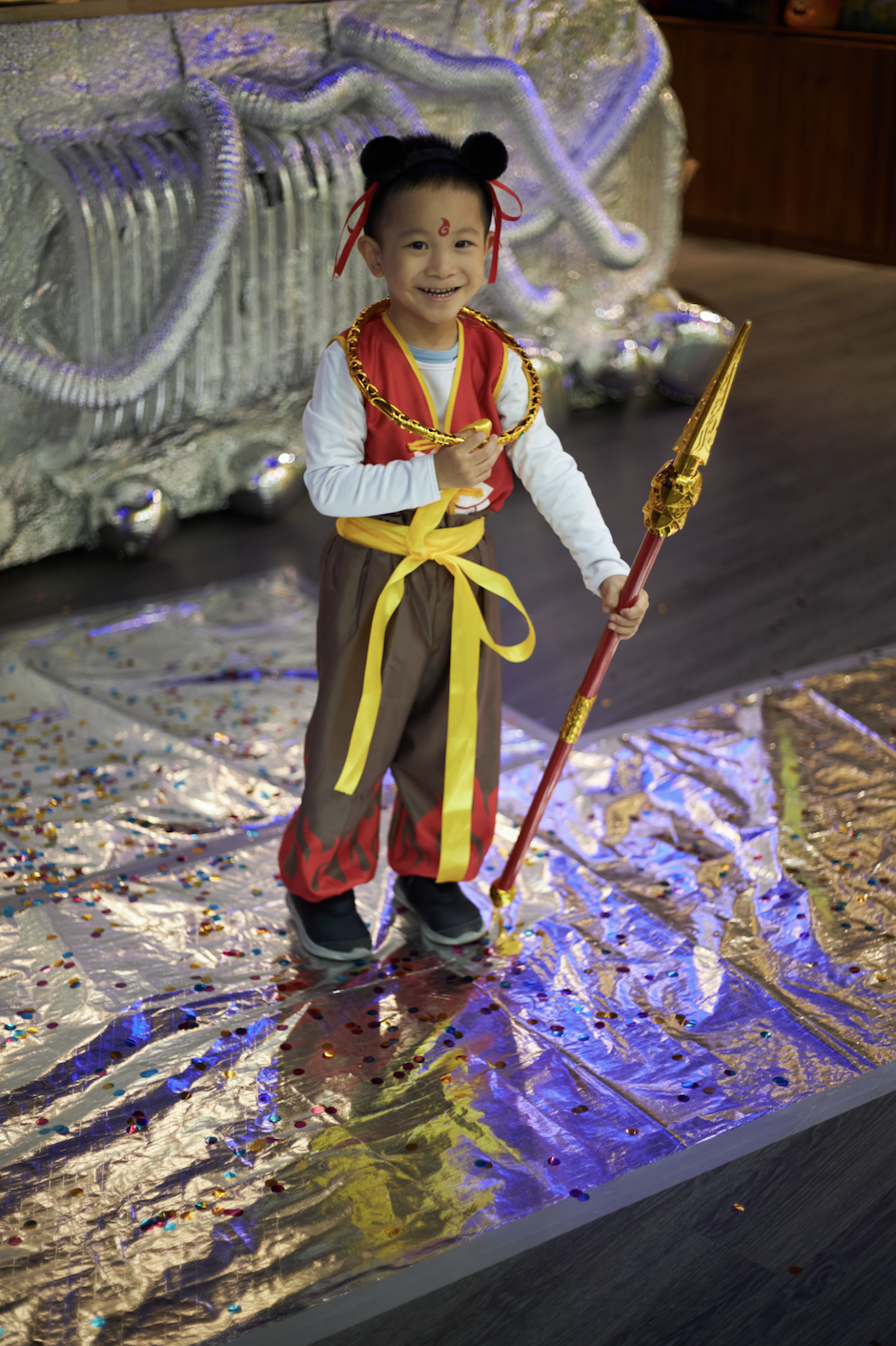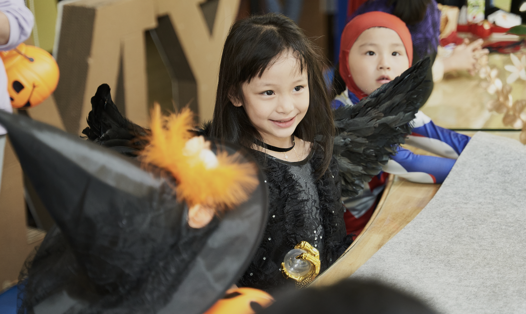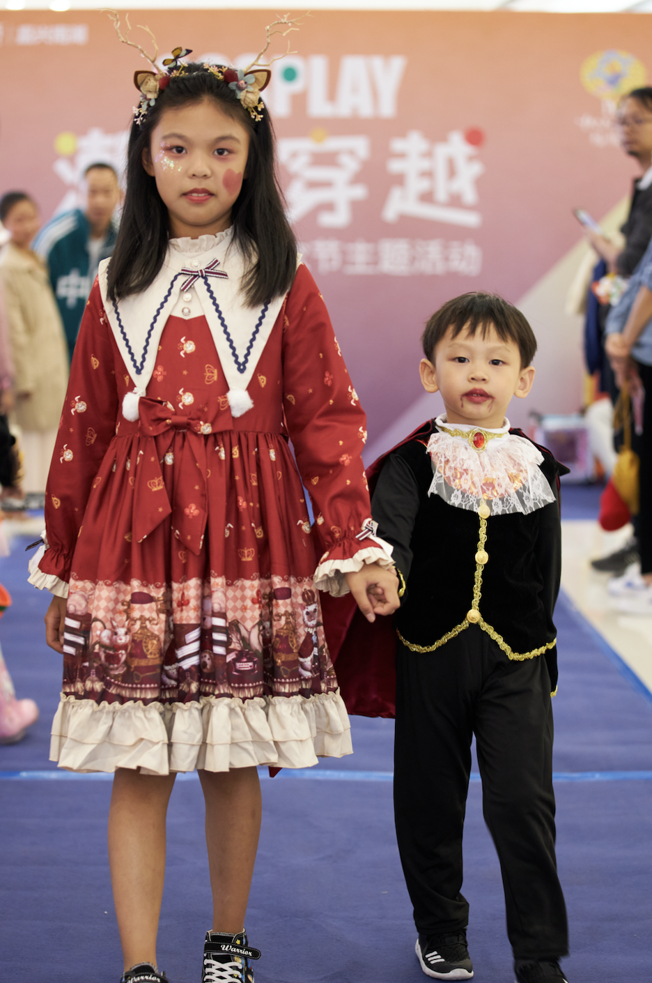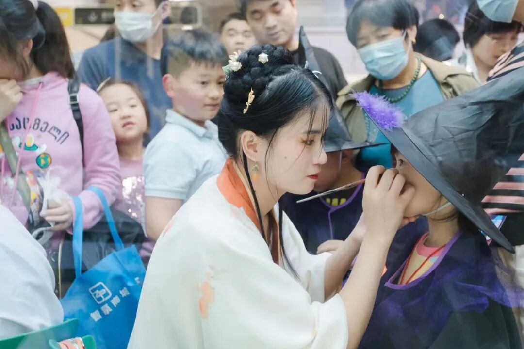 孩子们用奇装异服、搞怪妆容,