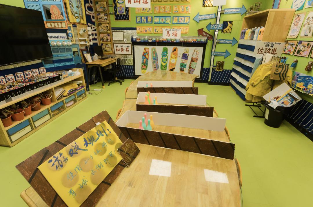 老师们设计了不同的游戏教室和游戏项目,