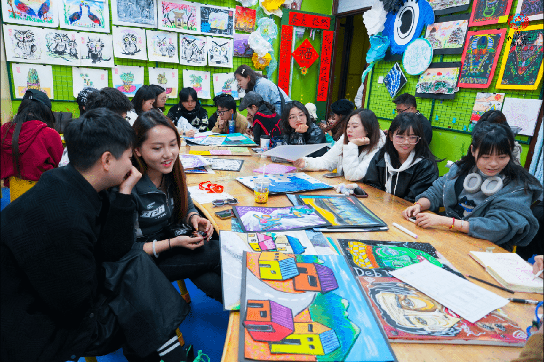 在孩子的学习成长过程中,良好的环境氛围相当重要,学艺术更是如此。老师们从年前开始,就在为校区的新装置创作,给校区换上新的特色装置,还有打卡区。![]()