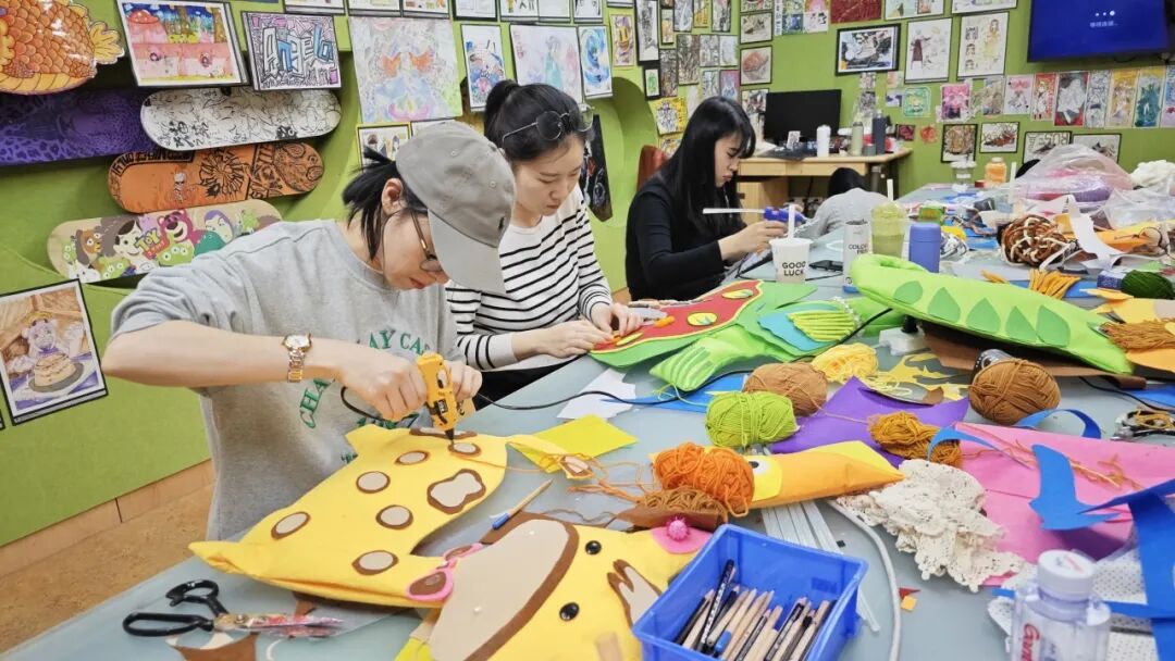 大家现场分组完成集体创作,根据不同的主题和材料,专研技法,思维碰撞,精彩展现出杨梅红教师团队的专业性和艺术风采。