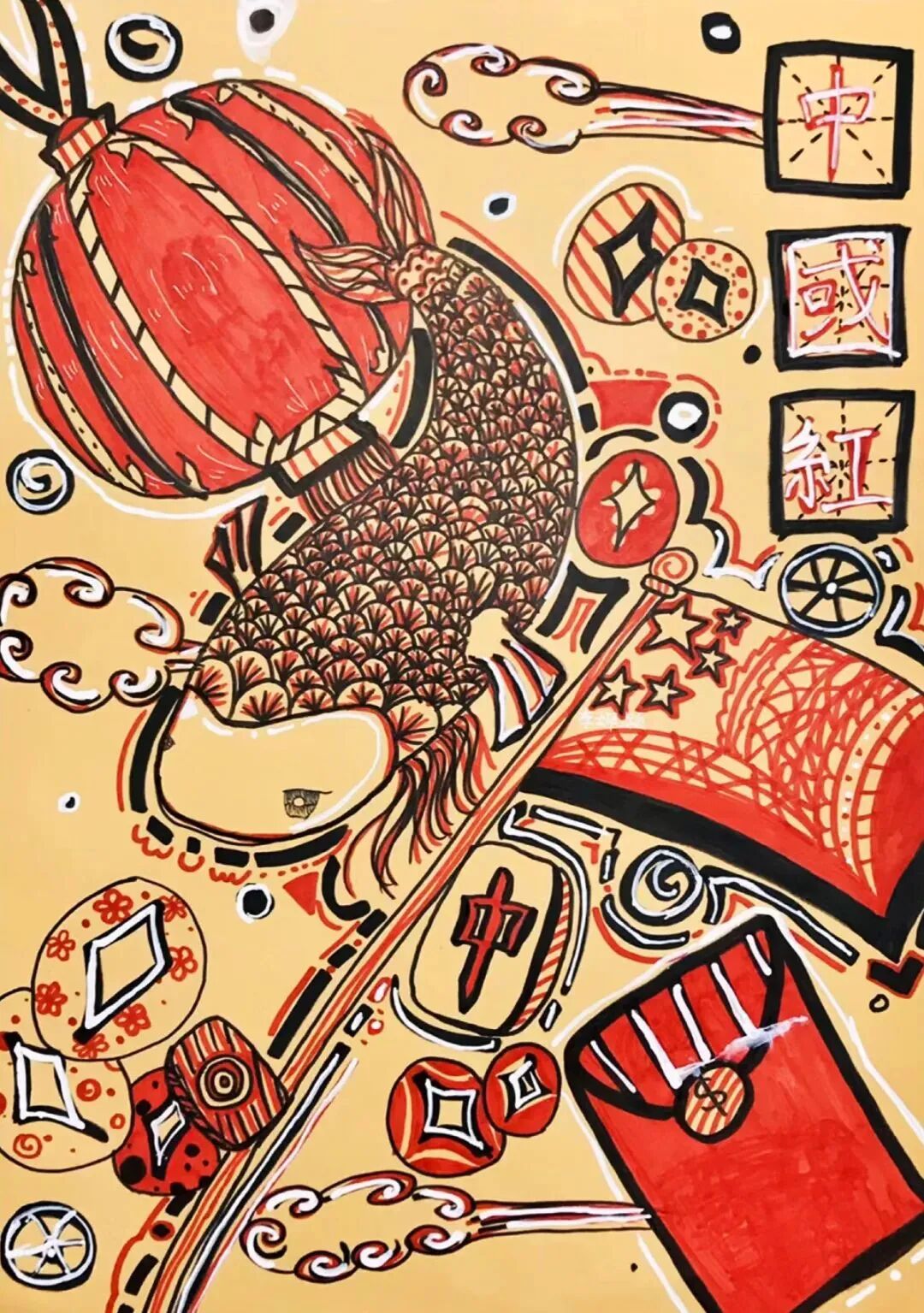 《喜庆的中国红》 贾越然 8岁