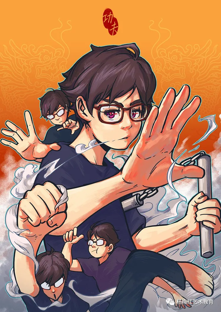“因为在课堂中无意识地用了很多肢体语言,让孩子们产生了‘哎哟!翰翰老师功夫好像耍得不错哦!’的错觉,于是,创作灵感来了!”