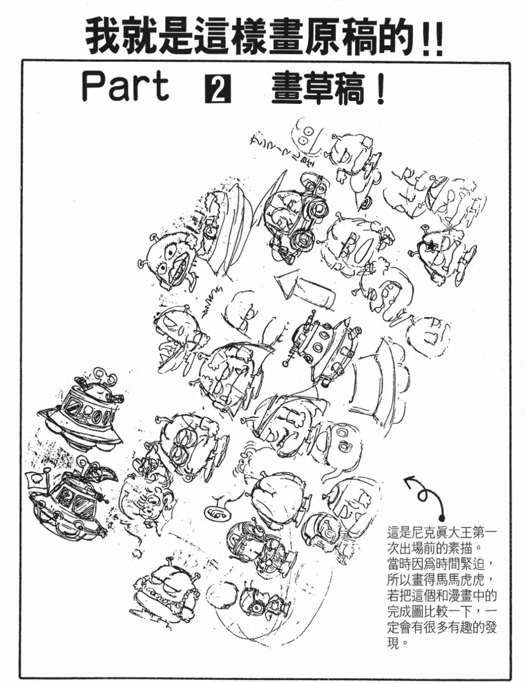 经典漫画《龙珠》、《阿拉蕾》的作者鸟山明,他在创作前,会先画大量的人物草稿,鸟山明认为,这些非正式的素描草稿虽然画得“马马虎虎”,但和漫画中的完成图比较起来,会有更多有趣的细节。