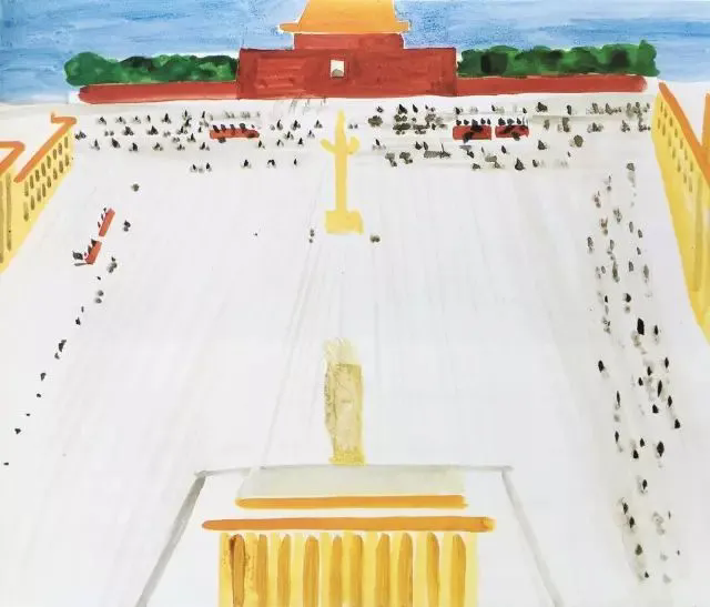 当时的霍克尼还正在努力想摆脱源于文艺复兴透视习惯的束缚,而中国的旅程则成为他突破瓶颈的最好灵感。他每到一处就热切地与当地的艺术家交流,他尤其喜欢这里的老百姓和嬉闹的孩子们,在杭州,霍克尼还第一次尝试使用中国的毛笔和宣纸。这些与中国文化的近距离接触、理解与尝试,为霍克尼后来的艺术创作开启了新的视角。