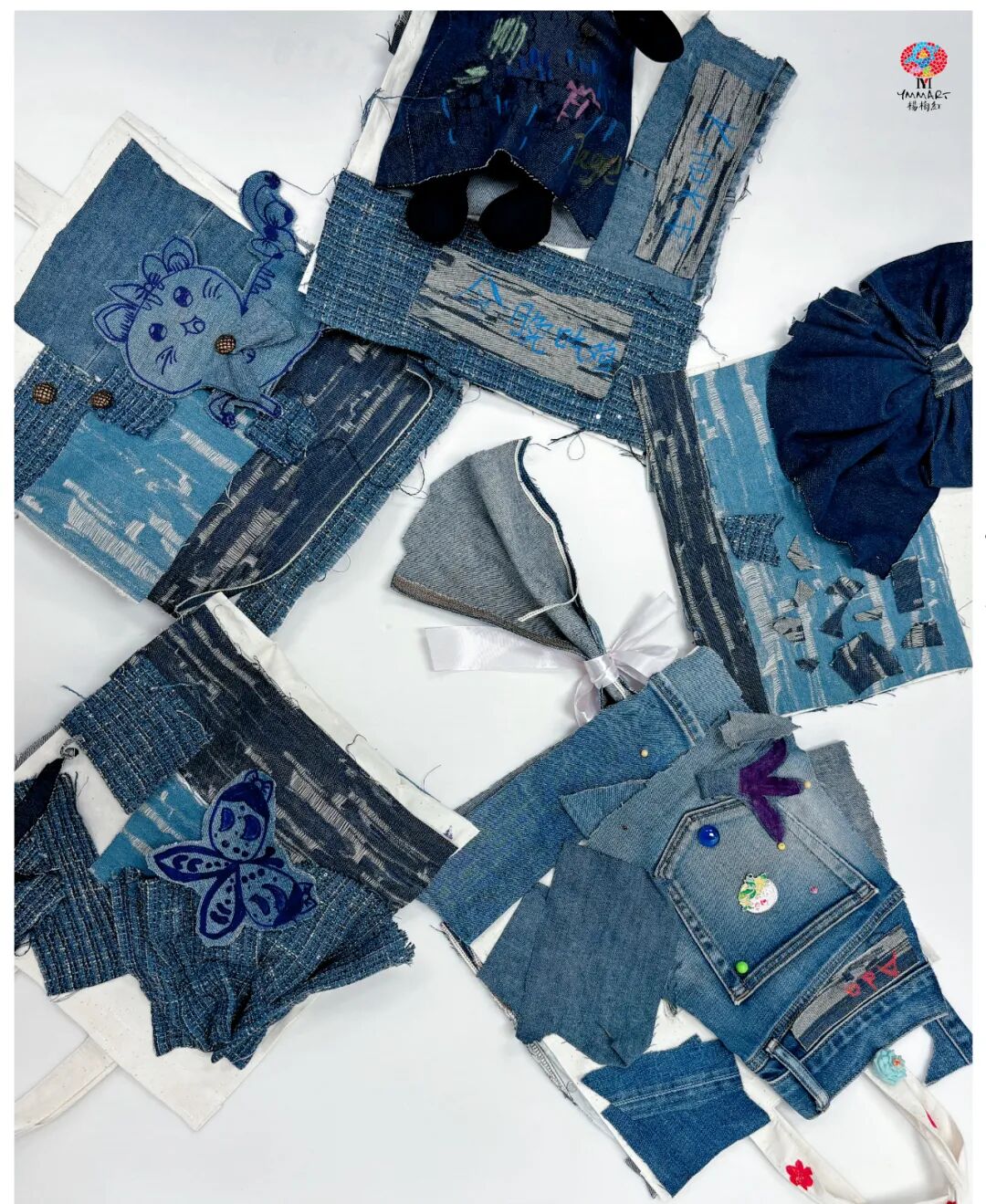通过使用废旧牛仔牛布艺进行艺术创作