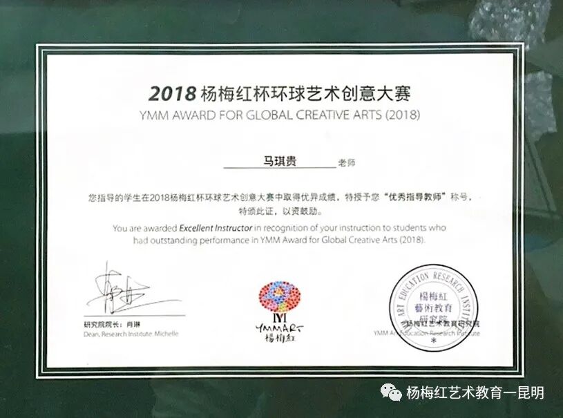 - 2018年杨梅红杯环球艺术创意大赛优秀指导教师称号