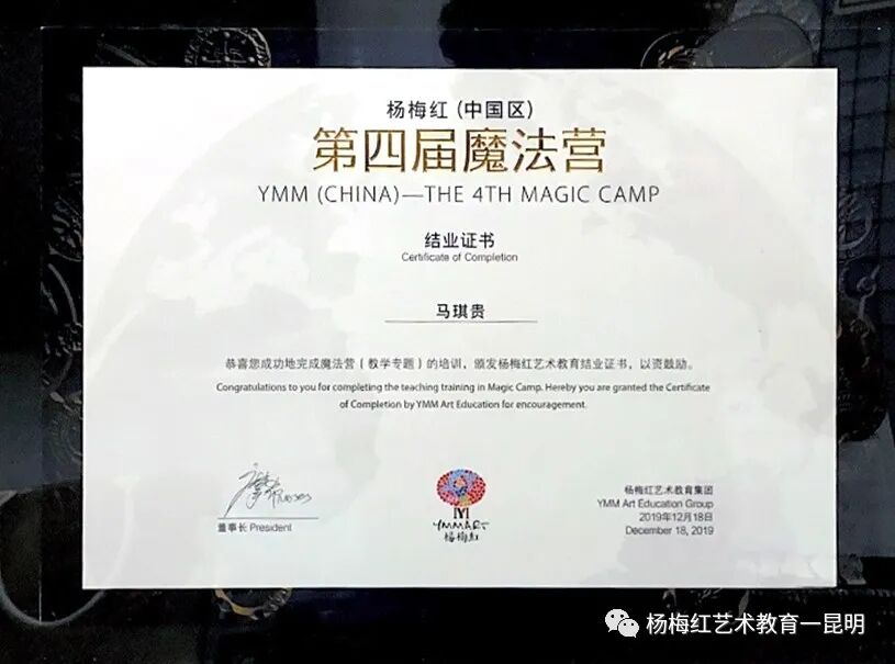 - 参加2019年杨梅红(中国区)第四届魔法营并获得结业证书