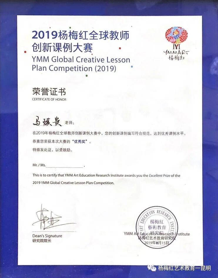 - 2019年6月获得杨梅红全球教师创新课例大赛优秀奖